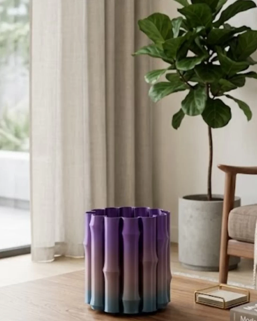 Modern tasarımı ve dikkat çekici mor gri geçişli renk yapısıyla öne çıkan bu dekoratif vazo, yaşam alanlarınıza estetik ve zarif bir dokunuş katmak için özel olarak tasarlanmıştır. Minimal ve çağdaş çizgileri sayesinde hem klasik hem de modern dekorasyon tarzlarına kolaylıkla uyum sağlar. Ürün, bulunduğu ortamda güçlü bir görsel etki oluşturarak dekorasyonun tamamlayıcı parçası haline gelir.Silindirik formu ve yüzeyindeki özel dalgalı tasarım detayları, ürüne farklı bir karakter kazandırır. Işığa göre ton değiştiren mor ve gri renk geçişi, bulunduğu ortama derinlik ve modern bir hava katar. Özellikle masa üstü, raf, sehpa veya TV ünitesi üzerinde kullanıldığında dikkat çekici bir odak noktası oluşturur.Kompakt boyutu sayesinde dar alanlarda bile rahatlıkla kullanılabilir. Salon, yatak odası, ofis, çalışma masası veya giriş alanlarında dekoratif amaçlı tercih edilebilir. İçine yapay çiçekler, kuru çiçekler veya dekoratif objeler yerleştirerek farklı konseptler oluşturabilirsiniz. Aynı zamanda tek başına da oldukça şık bir görünüm sunar.Dayanıklı yapısı sayesinde uzun süreli kullanım imkanı sağlar. Hafif olması sayesinde kolay taşınabilir ve farklı alanlarda rahatlıkla konumlandırılabilir. Modern yaşam alanlarına uyum sağlayan bu vazo, hem kendiniz için hem de hediye olarak tercih edilebilecek şık bir dekorasyon ürünüdür.