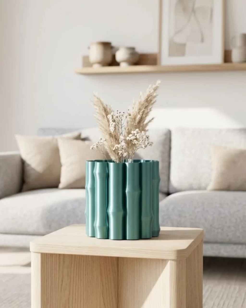Canlı ve parlak yeşil tonlarıyla öne çıkan bu dekoratif vazo, modern yaşam alanlarına estetik ve enerjik bir dokunuş katmak isteyenler için ideal bir seçenektir. Göz alıcı rengi sayesinde bulunduğu ortamda dikkat çeker ve dekorasyonun tamamlayıcı değil, doğrudan odak noktası haline gelir.Ürünün silindirik formu ve yüzeyindeki özel tasarım detayları, klasik vazolardan farklı ve modern bir duruş sergiler. Dalgalı yüzey yapısı, ışıkla birlikte farklı yansımalar oluşturarak ürüne hareket kazandırır. Bu sayede bulunduğu ortamda dinamik ve modern bir atmosfer oluşturur.Geniş kullanım alanı sunan bu ürün; salon, yatak odası, ofis, çalışma alanı ve giriş bölümlerinde rahatlıkla kullanılabilir. Masa üstü, raf veya sehpa üzerinde konumlandırıldığında dekorasyonu tamamlayan şık bir parça haline gelir. İçine yerleştirilecek çiçeklerle daha doğal ve canlı bir görünüm elde edilebilir.Dayanıklı yapısı sayesinde uzun süreli kullanım imkanı sunar. Hafif olması sayesinde kolay taşınır ve farklı alanlarda pratik şekilde kullanılabilir. Kolay temizlenebilir yüzeyi ile kullanım sonrası bakım gerektirmez.Modern tasarımı ve dikkat çekici rengi ile öne çıkan bu dekoratif vazo, hem günlük kullanım hem de hediye alternatifi olarak tercih edilebilir. Bulunduğu ortama canlılık ve estetik kazandırır.