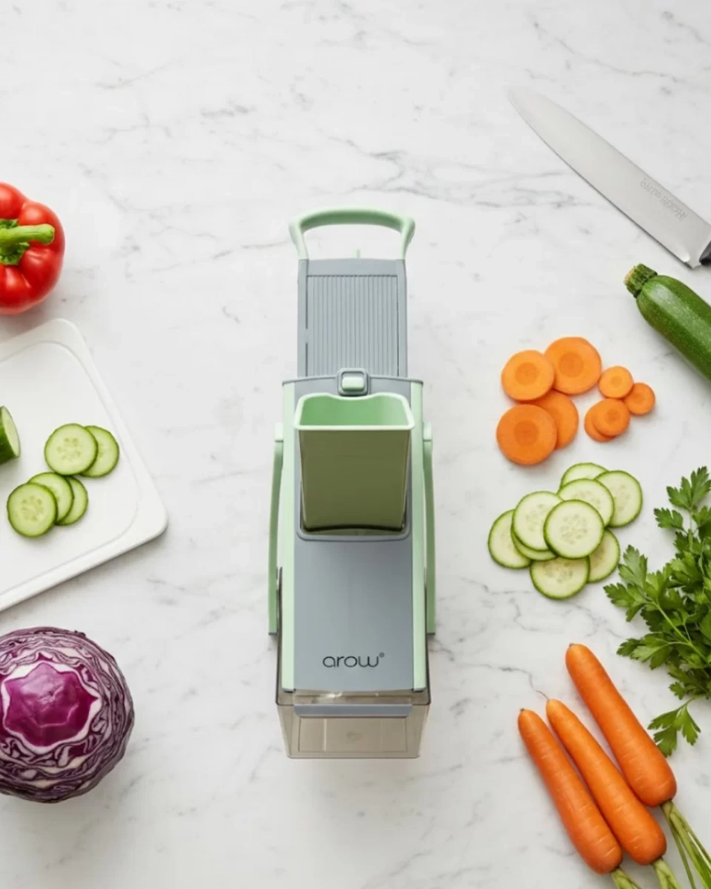 Modern mutfaklar için tasarlanmış paslanmaz çelik el rendesi, fonksiyonel özellikleriyle dikkat çeker. Dayanıklı çelik yapısı, sağlamlık ve uzun süreli kullanım imkânı sunar. Keskin bıçakları sayesinde zahmetsiz doğrama ve dilimleme yapılabilir.Üst bastırma aparatı, güvenli ve dengeli kullanım sağlar. Ellerin bıçaklara temas etmesini önleyen tasarım, ürünü en güvenli seçeneklerden biri haline getirir. Katlanabilir yapısı ile saklaması son derece kolaydır.Yiyecek toplama kabı tezgâhın temiz kalmasına yardımcı olurken, temizlik fırçası bıçak bakımını pratik hale getirir. Estetik görünümüyle mutfağınıza modern bir hava katar.