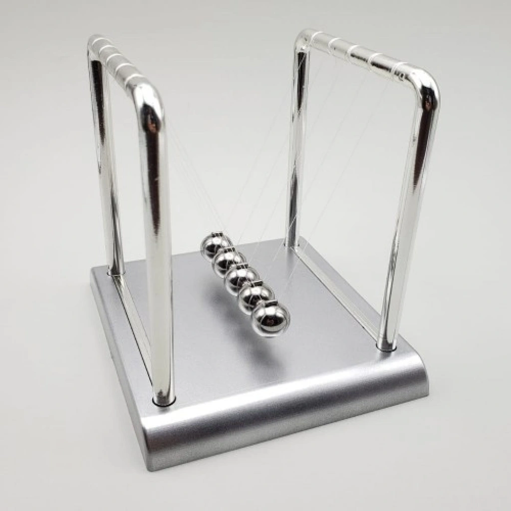 Orta Boy Gümüş BalansOrta Boy Gümüş Balans, modern ve şık gümüş rengi tasarımıyla hem dekoratif hem de stres giderici bir masaüstü ürünüdür. Newton denge prensibi ile çalışan bu balans modeli, hareket ettirildiğinde topların ritmik salınımı sayesinde hem görsel hem de işitsel bir rahatlama sunar.Beş metal topun yan yana dizildiği bu klasik Newton balans modelinde bir topu çekip bıraktığınızda toplar art arda hareket eder ve bir süre sonra kendiliğinden durur. Ofis ortamında, çalışma masasında veya ev dekorasyonunda kullanmak için ideal bir üründür. Hem yetişkinlerin hem de gençlerin severek kullanabileceği trend bir denge oyuncağıdır.Şık duruşu, modern görünümü ve stres azaltıcı etkisi ile sevdiklerinize verebileceğiniz etkileyici hediye seçeneklerinden biridir.Ürün ÖzellikleriTopları metal malzemeden üretilmiştir.Alt kaide plastik malzemedir.Stres atmaya yardımcı bir üründür.Şık ve tasarım bir masaüstü dekorudur.Son dönemlerin en trend denge balans modellerindendir.Ürün Ölçüsü14 cm x 11 cm