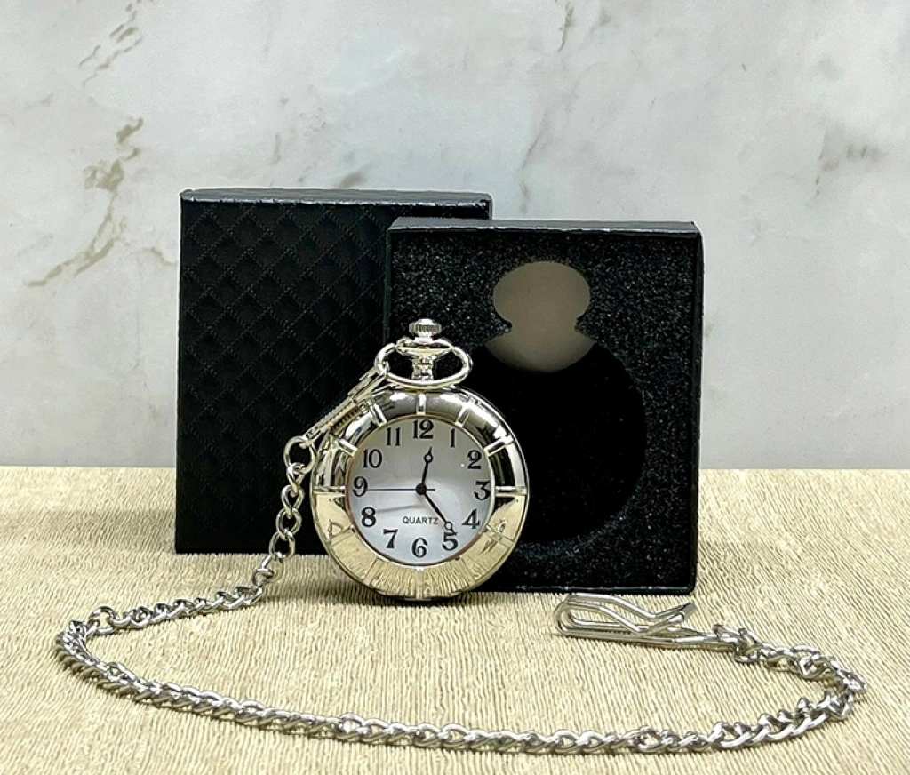 Özel Kutulu Gümüş Köstekli Saat Gümüş kaplaması ve klasik cep saati formuyla zarif bir nostalji vizyonu sunan Özel Kutulu Gümüş Köstekli Saat , hem tarz hem de fonksiyon açısından öne çıkıyor. 4×5 cm boyutuyla cepte taşınabilecek kadar kompakt; özel kutusuyla hediye olarak da sunulabilecek hazır bir seçenek. Koleksiyon koleni tamamlayacak ya da masaüstü dekorasyonunda prestij katacak bir aksesuar.Ürün ÖzellikleriBoyut: 4 × 5 cm Model: Gümüş Köstekli Cep Saati Paket İçeriği1 adet Özel Kutulu Gümüş Köstekli Saat ALK468