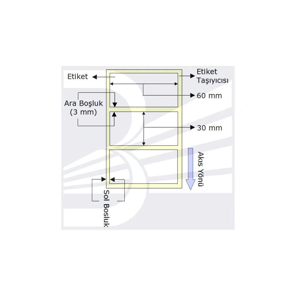 MalzemeVellum Ölçü60 mm X 30 mm (Tekli) YapışkanlıVar Kullanılabilen Ribon tipiWAX Ribon Gramaj110 gram ( ±10 gram) Etiket Genişliği60 mm Etiketin Yüksekliği30 mm Bir satırdaki etiket sayısı1 Rulodaki satır sayısı1.000 Rulodaki etiket sayısı1.000 Rulo iç çapı40 mm Rulo dış çapı100 mm ( ±5 mm) Rulo genişliği66 mm Etiket rengiBeyaz Taşıyıcı rengiAçık sarıArgox OS-204Argox OS-214TTArgox OS-214PlusArgox OS-2140Argox OS-2140DArgox A-200Argox A-2240Argox CP-2140Argox R-400Argox R-600Argox X-1000+Argox X-1000VArgox X-1000VLArgox X-2000+Argox X-2000VArgox X-3000+Argox X-3200Argox G-6000AVERY DENISSON AP 5.4AVERY DENISSON 64.06AVERY DENISSON 64.08BEIYANG BTP-2200EBEIYANG BTP-2300EBEIYANG BTP-L42BIRCH BP-343DBIRCH GEMINI TBIRCH GEMINI 2MBIRCH APOLLO SerisiBIRCH BP-742BIRCH BP-743CAB A4+CAB A6+CAB A8+CAB MACH4CAB E4CITIZEN CLP-521CITIZEN CLP-621CITIZEN CLP-631CITIZEN CLP-7202Datamax E-4203Datamax E-4208Datamax I-4208DATAMAX M-4206Godex EZ-1105Godex EZ-1100PlusGodex G-500Godex G-530Godex EZPi-1300Godex EZ-2200PlusGodex EZ-2300PlusIntermec PF8INTERMEC PC4MONARCH 9416 XL TTMONARCH 9416 XL TDPRINTRONIX T4MPRINTRONIX T5000 SerisiSato CL400eSato CX400Toshiba TEC B-EV4DToshiba TEC B-EV4TToshiba TEC B-SA4TMToshiba TEC B-SX600Toshiba TEC B-SV4Toshiba TEC B-443TSC TDP-244TSC TTP-244TSC TTP-247TSC TTP-243 PlusTSC TTP-244ME PlusTSC TTP-245 PlusTSC TTP-342M PlusTSC TTP-384MTSC TTP-342 PlusTSC TTP-343 PlusZebra TLP-2844Zebra GK420TZebra GK420DZebra GX420TZebra GX420DZebra GX430TZebra S-600Zebra ZM-400Zebra ZM-600ZEBRA S4MZebra 110i
