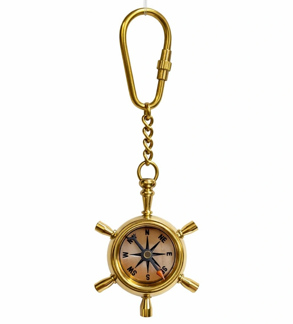 Nevamel® Pirinç Dümen İçinde Pusula Tasarım Anahtarlık