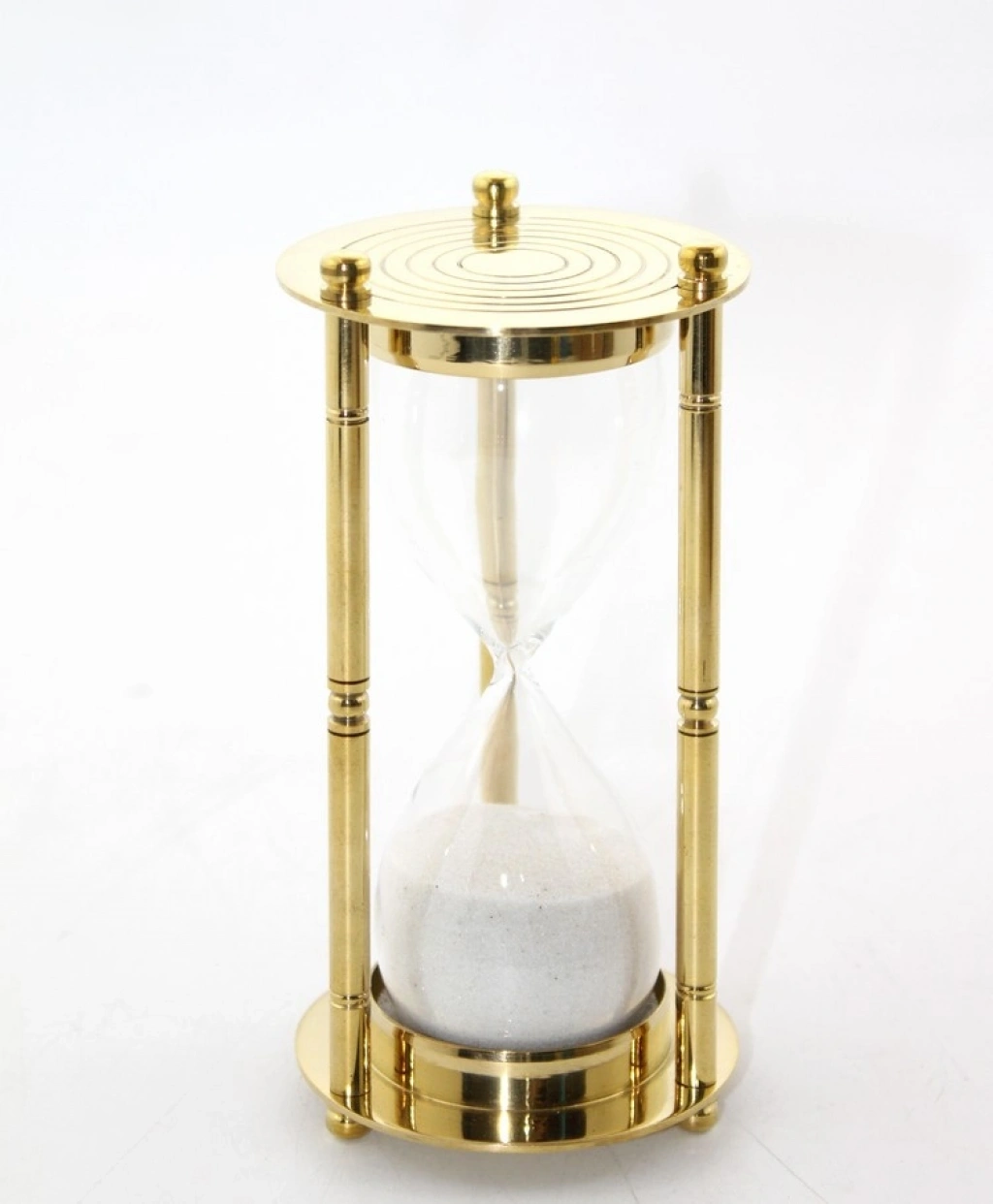 PİRİNÇ KUM SAATİ MODEL 5Ürün ÖzellikleriŞık ve zarif tasarımıyla dikkat çeken Pirinç Kum Saati Model 5, dayanıklı pirinç malzemeden üretilmiştir. Klasik tarzı modern dokunuşlarla buluşturan bu kum saati, masaüstü dekorasyonu için mükemmel bir tercih sunar. Şeffaf cam haznesi, ince işçiliğiyle ön plana çıkan pirinç çerçevesiyle tamamlanmıştır. Ofis, çalışma alanı veya ev dekorasyonu için nostaljik bir atmosfer yaratır.Paket İçeriği1 Adet Pirinç Kum Saati