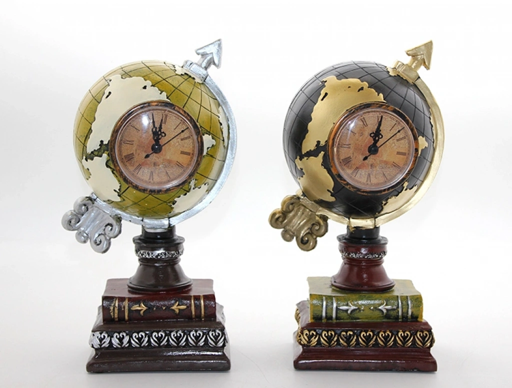 POLYESTER SAATLİ DÜNYA KÜREÜrün ÖzellikleriPolyester Saatli Dünya Küre, klasik dünya küresi tasarımını masa saati fonksiyonuyla birleştiren dekoratif ve işlevsel bir masaüstü aksesuarıdır. Antik eskitme görünümlü detayları, işlemeli kaide yapısı ve üst kısmındaki küre formu ile bulunduğu ortama nostaljik ve prestijli bir hava katar. Ön yüzeyde yer alan analog saat mekanizması sayesinde hem zamanı takip edebilir hem de dekoratif bir obje olarak kullanabilirsiniz. Polyester malzemeden üretilmiş sağlam gövdesi, detaylı işçilik görünümü sunar ve masa üzerinde dengeli bir duruş sağlar. Ofis masalarında, çalışma alanlarında, kitaplık raflarında ve klasik dekorasyon tarzına sahip mekanlarda dikkat çekici bir tamamlayıcıdır. Hem dekoratif hem fonksiyonel yapısıyla öne çıkan bir saatli masaüstü dünya küresi seçeneğidir. Klasik tasarım sevenler için şık bir dekoratif polyester dünya küre saat alternatifidir. Görselde yer alan iki modelden biri karışık olarak gönderilmektedir.Ürün Teknik ÖzellikleriÖzellikAçıklamaÜrün AdıPolyester Saatli Dünya KüreMalzemePolyesterTasarımAntik Eskitme Görünümlü Küre ve SaatFonksiyonAnalog Saat + Dekoratif KüreModel2 Farklı Model (Karışık Gönderim)Kullanım AlanıEv, Ofis, Çalışma Masası, KitaplıkPaket İçeriği1 Adet Polyester Saatli Dünya Küre