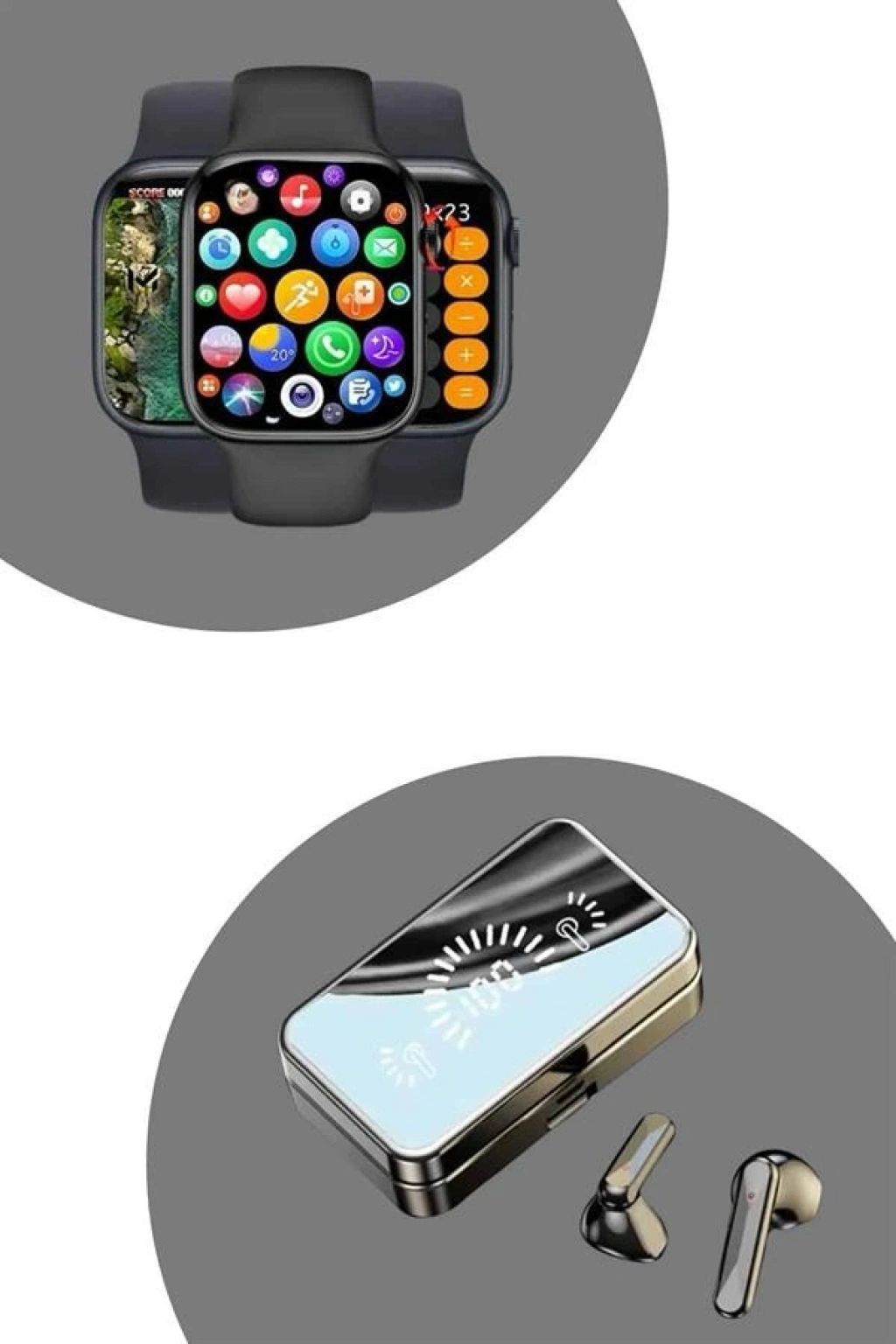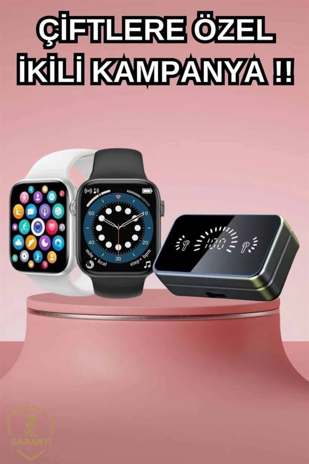 KULAKLIK:Dokunmatik kontrol özelliği sayesinde müziklerinizi ve çağrılarınızı kolayca yönetebilirsiniz. Dahili mikrofonu ile net görüşmeler yaparak, eller serbest deneyiminin keyfini çıkarın. Suya ve tere karşı dayanıklı yapısı sayesinde, spor aktivitelerinizde veya yağmurlu havalarda rahatlıkla kullanabilirsiniz. Çift telefon desteği ile iki cihaz arasında kesintisiz geçiş yaparak, bağlantıda kalın. Aktif gürültü engelleme (ANC) teknolojisi ile dış dünyanın gürültüsünü filtreleyerek, müziğinize tam odaklanabilirsiniz.AKILLI SAAT:Bu akıllı saat, modern teknoloji ile günlük hayatınızı kolaylaştıracak özellikleri bir araya getiren yenilikçi bir cihazdır. Tüm iOS ve Android akıllı telefonlarla uyumlu olan bu saat, geniş bir kullanıcı kitlesine hitap eder. Siri sesli asistan desteği sayesinde sesli komutlarla işlemlerinizi hızlıca gerçekleştirebilirsiniz. Bluetooth bağlantısı aracılığıyla çağrı yapma, çağrılara cevap verme veya reddetme, sık görüşülenler listesini yönetme, çağrı geçmişini görüntüleme ve arayan kimliğini görme gibi birçok özelliği destekler. Ayrıca, SMS ve diğer uygulamalardan gelen bildirimleri görüntüleme ve okuma imkanı sunar.44 mm paslanmaz çelik kasası, dayanıklılığı ve şıklığı bir arada sunar. 240x285 piksel çözünürlükteki, köşeden köşeye tam gelişmiş dokunmatik OLED ekranı, parlak ve net bir görüntü deneyimi sağlar. 280 mAh Li-Po bataryası, uzun süreli kullanım sunarak gün boyu yanınızda olmasını garanti eder. 128 MB bellek kapasitesi ve aktif iki yan tuşuyla kullanıcı dostu bir arayüz sunar.Sağlık ve spor odaklı özellikleriyle öne çıkan bu cihaz, günlük aktivitelerinizi ve sağlık durumunuzu takip etmenize yardımcı olur. Pedometre özelliğiyle egzersiz süresi, kat edilen mesafe ve yakılan kalori gibi verilere ulaşabilirsiniz. EKG, kan basıncı, tansiyon ölçümü ve kandaki oksijen oranını ölçme gibi üçlü sağlık takibi özellikleri sayesinde sağlığınızı yakından izleyebilirsiniz. Uyku takibi, hava durumu, kronometre, alarm, çağrı hatırlatma, hareketsizlik ve su içme hatırlatmaları gibi işlevlerle hayatınızı kolaylaştırır.Spor severler için, koşu, bisiklet, kuvvet antrenmanı, basketbol, tenis, voleybol ve futbol gibi çoklu spor modları sunar. Veri (DATA) sekmesi sayesinde günlük ve anlık sağlık verilerinizi analiz edebilirsiniz. Uygulama üzerinden sınırsız saat kadranı seçebilir ve ekranınıza dilediğiniz fotoğrafı yerleştirebilirsiniz. Akıllı bileklik hareket sensörü, ekranın kolayca açılıp kapanmasını sağlar.10 kişiye kadar hızlı arama özelliği, değiştirilebilir kordon seçeneği ve Türkçe dahil 23 farklı dil desteğiyle kişiselleştirilebilir bir deneyim sunar. Uçak modu ve rahatsız etme modu gibi işlevlerle kullanımınızı daha verimli hale getirebilirsiniz. Saat üzerinden müzik dinleme, uzaktan fotoğraf çekme gibi eğlenceli özellikler de cihazın dikkat çeken detayları arasındadır.Şıklığı, dayanıklılığı ve fonksiyonelliği bir araya getiren bu akıllı saat, hem teknoloji tutkunları hem de aktif bir yaşam tarzını benimseyen kullanıcılar için mükemmel bir tercihtir.