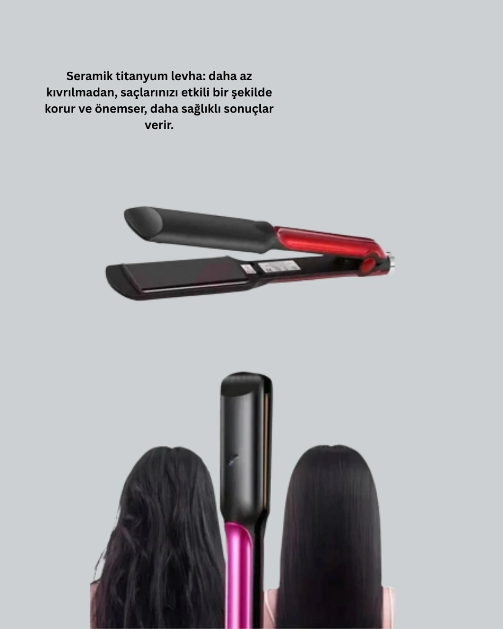 Bu profesyonel saç düzleştirici, iyon teknolojisi ve titanyum kaplamalı plakalar ile saçınıza hem güzellik hem sağlık sunar. 160°C–220°C sıcaklık aralığı, farklı saç tiplerine uygun şekillendirme sağlar. Sekiz dakikada istenen sıcaklığa ulaşarak hızlı kullanım imkânı tanır.Yuvarlatılmış plaka kenarları, saçınıza hacim ve dalga kazandırmak isteyenler için büyük avantajdır. Bu sayede tek cihazla saç şeklinizi kolayca değiştirebilirsiniz.İyonlu yüzey sayesinde saçta elektriklenme ve kabarma engellenir. Saç daha parlak ve ipeksi görünüm kazanır. Titanyum plaka eşit ısı dağılımı sağlar, saçta yanma ve kurumayı önler.360° dönebilen kablo kullanımını daha özgür kılar. Tasarımı hafif ve minimalisttir, çanta içine sığar. Seyahatlerde kullanıma uygundur.Kablo ve gövde dayanıklı ve ısıya dayanıklıdır, uzun süre güvenle kullanabilirsiniz.