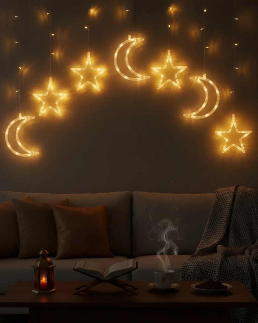 Ramazan için özel tasarlanmış büyük boy ışıklı ay yıldız LED, hem dekoratif hem aydınlatıcı özelliğe sahiptir.Şeffaf gövde içinde yer alan LED ışıklar güçlü ve homojen parlaklık sağlar. Manevi atmosferi destekleyen estetik bir görünüm sunar.Ev ve iş yerlerinde rahatlıkla kullanılabilir. Kolay asılabilir yapısı sayesinde pratik kullanım sağlar.Ramazan süsü, dini dekorasyon ve vitrin tasarımı için idealdir.