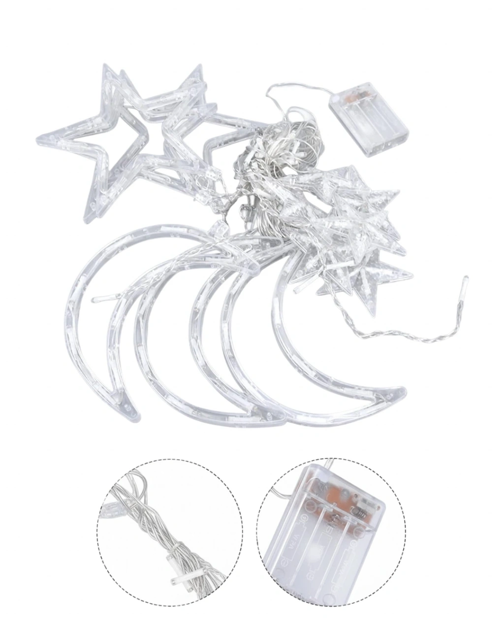Ramazan süslemeleri için özel olarak tercih edilen bu dekoratif LED perde ışık, ay ve yıldız figürleriyle estetik bir görünüm sunar. Güvenli LED yapısı sayesinde uzun süreli kullanımlarda ısınma yapmaz. Salon, çocuk odası, yatak odası veya vitrin dekorasyonlarında kullanılabilir. Düğün, nişan, doğum günü ve özel davetlerde de ortam aydınlatması olarak tercih edilebilir.