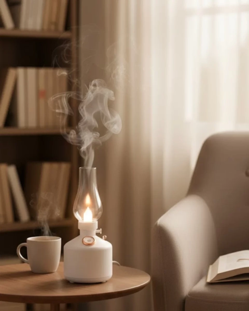 Vintage tasarım detaylarına sahip bu aroma difüzörü, bulunduğu ortama estetik bir dokunuş kazandırır. Nano mist teknolojisi ile ortam havasını dengeler.280 ml su haznesi uzun süreli nemlendirme sağlar. USB şarjlı 1200 mAh batarya sayesinde taşınabilir yapıdadır. LED ışık sistemi dekoratif ambiyans oluşturur.Aromaterapi özelliği ile rahatlatıcı koku yayılımı sağlar. Ev ve ofis için uygundur.