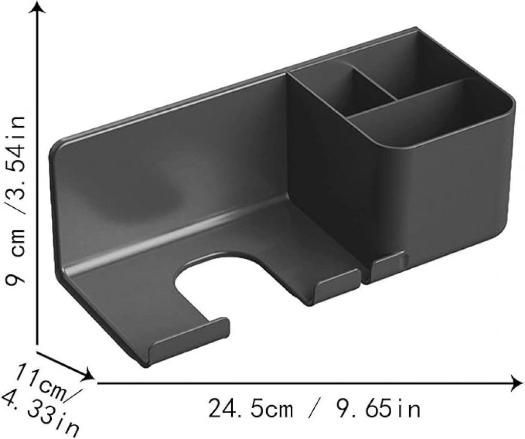SAÇ KURUTMA MAKİNESİ ORGANİZERİSaç Kurutma Makineniz İçin Düzenli ve Güvenli Bir Alan!Saç kurutma makinenizi temiz ve güvenli bir yerde tutarak tezgahınızdaki dağınıklığı ortadan kaldıran bu düzenli ve pratik organizer ile ihtiyacınız olduğunda saç kurutma makinenizi kolayca elinizin altında bulabilirsiniz. Pratik kullanımıyla dikkat çeken bu saç kurutma makinesi tutucusu, saç kurutma makinesi, saç maşası, düzleştirici ve diğer saç araçlarınızı düzenli bir şekilde saklamak için üç bölmeye sahiptir. Ayrıca, saç kurutma makinesinin kordonunu temiz tutmak için bir tutma kancası da bulunur. Kolay montajı sayesinde yüzeye delmeden veya zarar vermeden herhangi bir düz duvara monte edilebilir; sadece koruyucu filmi çıkarın ve birkaç saniye boyunca işaretsiz yapışkana bastırın. Yüksek kaliteli ABS malzeme ile üretilen bu tutucu, yüksek ağırlıklara dayanabilir ve uzun ömürlüdür. Ellerinizi koruyan sağlam bir yapıya ve yumuşak kenarlara sahiptir. Basit ve modaya uygun tasarımıyla banyoda, yatak odasında, kuaför salonunda veya tuvaletinizde kullanılabilir.Ürün ölçüleri fotoğrafların içerisinde yer almaktadır.Paket İçeriği1 adet saç kurutma makinesi organizeri