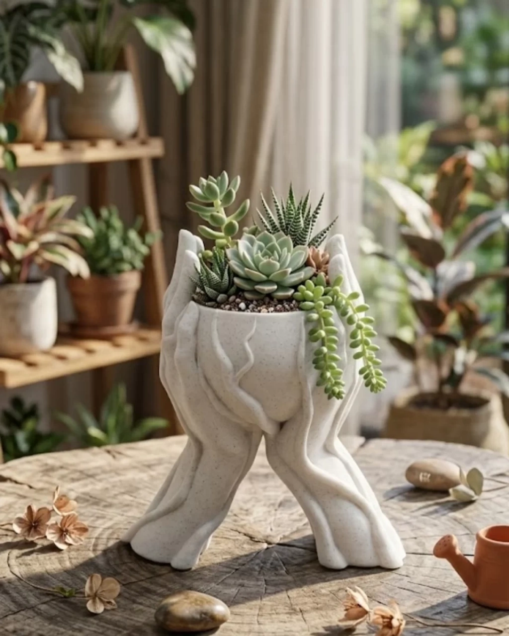 Nevamel® Sanatsal El Figürlü 3D Baskı Dekoratif Saksı Vazo Ev Ofis Dekoru