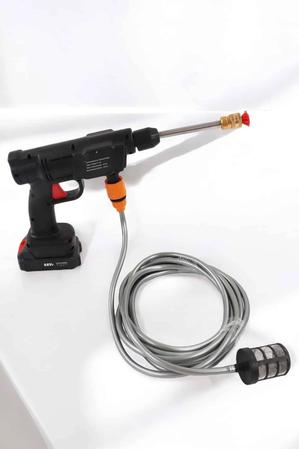 Yüksek Güçlü Motor 300W motorlu, maksimum 30 Bar su basıncına sahiptir. Verimli ve hızlı temizlik için yeterince güçlüdür. Ayrıca aşırı sıcaklık için otomatik kapanma özelliğine sahip bir sıcaklık koruma fonksiyonuna sahiptir. ve aşırı yük, güvenlik tehlikelerini ortadan kaldırabilir.Kullanımı Kolay kendinden emişli / musluk 2 çeşit su girişi, su almak daha uygun. Kurulumu kolaydır, tüm arayüzler hızla takılıp kurulur. Filtre sepetli 5 m'lik hortum, kirleri, parçacıkları, atık yaprakları, camuru vb. etkili bir şekilde filtreleyebilir. Kovadan/gölden/nehirden/musluktan kolayca su alabilirsiniz. Bu kablosuz yüksek basınçlı su tabancası, geleneksel küçük yüksek basınçlı temizleyicilerden daha taşınabilirdir.Şarj Edilebilir Pil  1 adet çıkarılabilir 15000mAh yüksek kapasiteli lityum pil ile donatılmıştır ve uzun süreli kullanım sağlar. Dolu şarjlı tek pil ile aracınızı rahatlıkla yıkayabilirsiniz. Bir kez tamamen şarj olması 4 saat sürer ve tek bir pilin pil ömrü 25 dakikaya kadar çıkar. Gövde su geçirmez özel malzemeden yapılmış olup, su ve elektrik izolasyonu daha güvenlidir. Her kullanımdan sonra pili kuru tutun, zamanında tamamen şarj edin.Mükemmel Hizmet Bu çok amaçlı yüksek basınçlı su tabancası, araba yıkama, bahçe sulama, tarımsal sulama ve günlük temizlik için çok uygundur. kullanımınız için 2 farklı nozul etkili temizlik. Akülü kablosuz yüksek basınçlı temizleme makinemiz çift sulama sistemine sahiptir. Sektör modeli ve doğrudan enjeksiyon modu için uygun iki çeşit nozul ile donatılmıştır. Sağlanan yüksek/düşük basınçlı nozullar ve temizlik maddesi tankları, araçları, bisikletleri, tekneleri, pencereleri ve şeritleri temizlemek için yaygın olarak kullanılabilir. Güç: 300W / 48V - 10ABatarya Kapasitesi: 15.000mAhKullanım Süresi: 20-30 DakikaAğırlık: 2kgHortum Uzunluğu: 5metreÇalışma Basıncı: 24.5bar/350psiPüskürtme Tepki Hızı: <15 sn.Su Emme Yüksekliği: >3.5mModel No: 8106 Paket İçeriği:* 48V Sulama Tabancası* Taşıma Çantası* 24V 15.000mAh Akü* 5 metre esnek boru* EU şarj adaptörü* Hortum filtresi* 2 Adet uç (düz ve dağınık su püskürtmesi)* 2 adet Hortum bağlantı ucu* Uzatma şaftı* Köpük veya ilaç haznesi