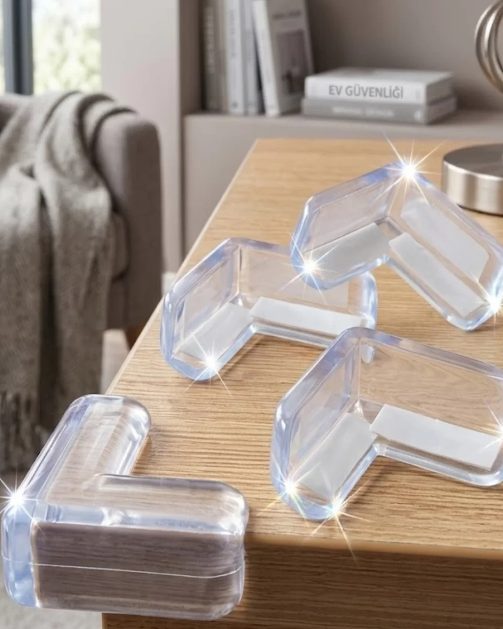Şeffaf köşe koruyucu seti, evde bulunan masa, sehpa ve mutfak tezgahı gibi mobilyaların keskin köşelerini güvenli hale getirmek için tasarlanmış pratik bir güvenlik ürünüdür. Özellikle küçük çocukların bulunduğu evlerde olası çarpma ve yaralanma riskini azaltmaya yardımcı olur.Yumuşak silikon içerikli plastik materyalden üretilmiş olan köşe koruyucular darbe etkisini azaltarak güvenli bir kullanım sağlar. Şeffaf yapısı sayesinde mobilyanın görünümünü bozmaz ve dekorasyona uyum sağlar.Kolay montaj özelliği sayesinde masa ve mobilya köşelerine kısa sürede takılabilir. Yapıştırma yöntemi ile pratik şekilde sabitlenebilir ve ihtiyaç halinde kolayca çıkarılabilir.