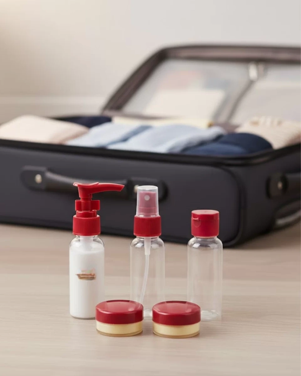 Seyahat İçin 5’li Şeffaf Kozmetik Organizer Seti, bakım ürünlerinizi düzenli ve planlı şekilde yanınızda taşımanızı sağlar. 30 ml kapasite sayesinde el bagajına uygundur.Şeffaf yapısı içerik takibini kolaylaştırır. Dayanıklı plastik malzeme sayesinde güvenli kullanım sunar.Sızdırmaz kapak mekanizması çanta içinde akma yapmaz. Kompakt tasarımı sayesinde yer tasarrufu sağlar.