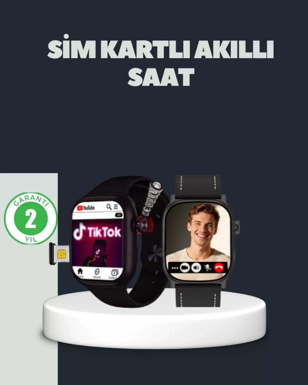 Günlük yaşamda hem iletişimi hem de sağlığınızı tek bir cihaz üzerinden yönetmek isteyenler için tasarlanan bu SIM kartlı akıllı saat, telefon bağımsız kullanım imkânı sunarak özgürlük sağlar. SIM kart uyumlu yapısı sayesinde ekstra bir uygulama indirmeye veya sürekli bir akıllı telefona bağlı kalmaya gerek kalmadan doğrudan arama yapabilir ve aramaları yanıtlayabilirsiniz. Bu özellik, özellikle dış mekân aktivitelerinde ve seyahatlerde büyük kolaylık sağlar.Saatte bulunan sesli görüşme fonksiyonu, telefon yanınızda olmasa bile iletişimde kalmanıza olanak tanır. Titreşim özelliği sayesinde gelen çağrı ve bildirimleri kolayca fark edebilir, önemli anları kaçırmazsınız. Siyah kasa rengi ve deri kordonu, hem spor hem de klasik kombinlerle uyum sağlayan şık bir görünüm sunar. Deri kordon, uzun süreli kullanımda konfor sağlar ve bilekte rahatsızlık oluşturmaz.Nabız sensörü, kalp atış hızınızı gün boyunca takip ederek sağlık verilerinizi analiz etmenize yardımcı olur. Uyku takibi fonksiyonu, uyku sürenizi ve kalitenizi izleyerek daha sağlıklı bir yaşam için farkındalık kazanmanızı sağlar. Adımsayar özelliği, günlük hareketlerinizi takip etmenizi ve hedeflerinize ulaşmak için motivasyon kazanmanızı destekler.3000–4000 mAh aralığındaki batarya kapasitesi, uzun süreli kullanım sunar ve sık şarj ihtiyacını azaltır. GPS desteği, konum takibi ve navigasyon ihtiyaçlarında pratik çözümler sunar. Suya ve toza dayanıklı yapısı sayesinde farklı hava koşullarında güvenle kullanılabilir. Yetkili servis desteği ile tamir edilebilir olması, uzun vadeli kullanım için güven verir.