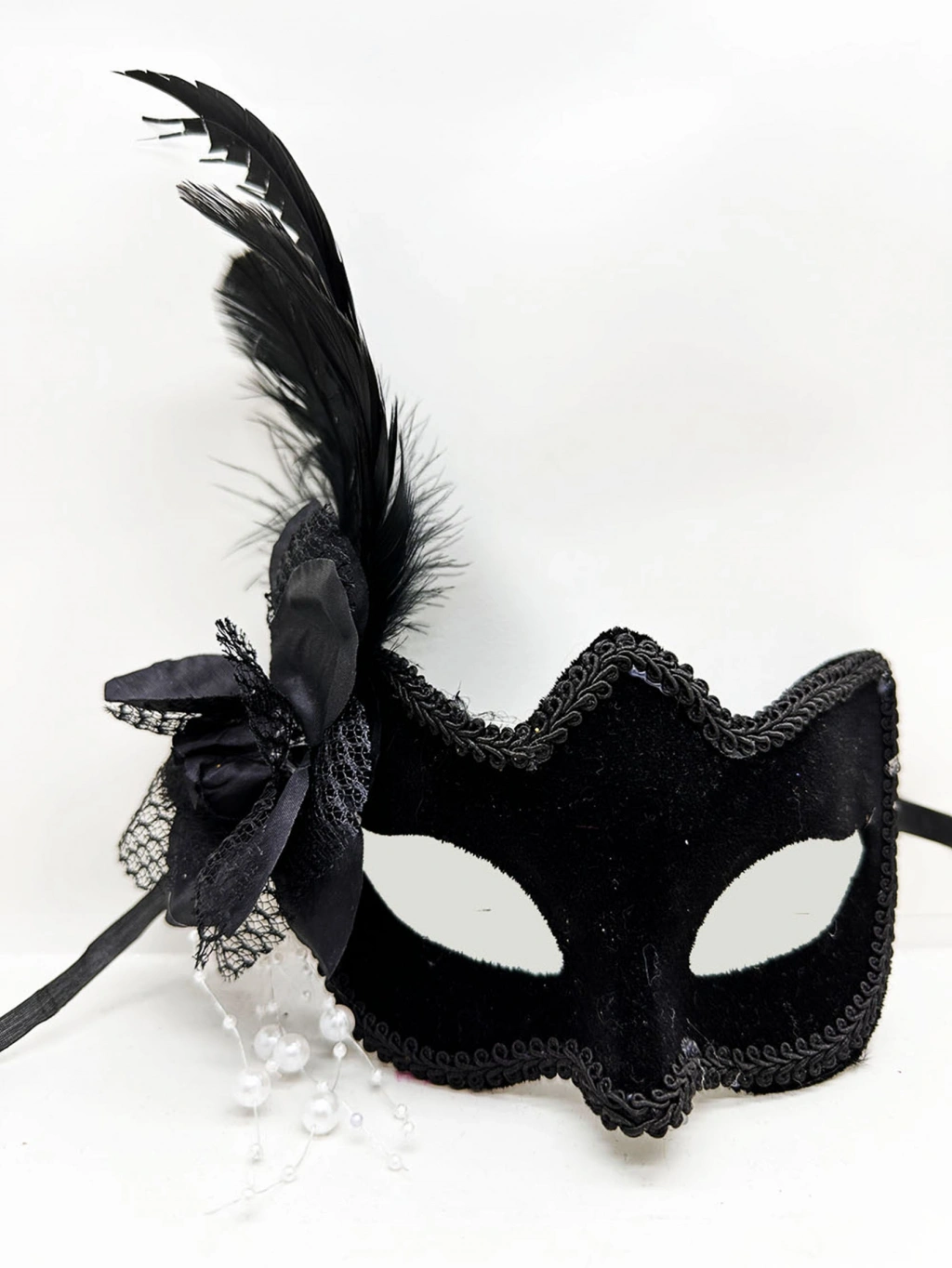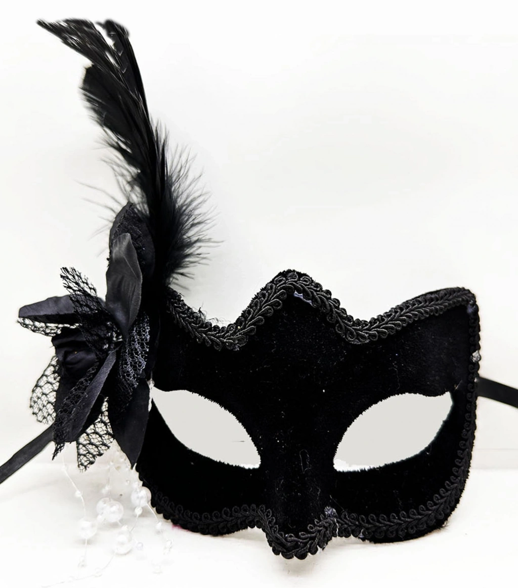 Nevamel Siyah Süet Yandan Tüylü İncili Parti Maskesi