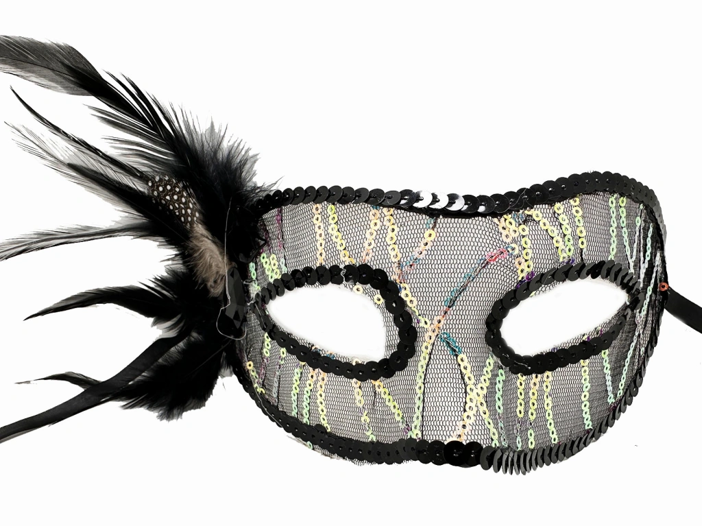 Nevamel Siyah Yandan Tüylü Pul Payet Maskesi