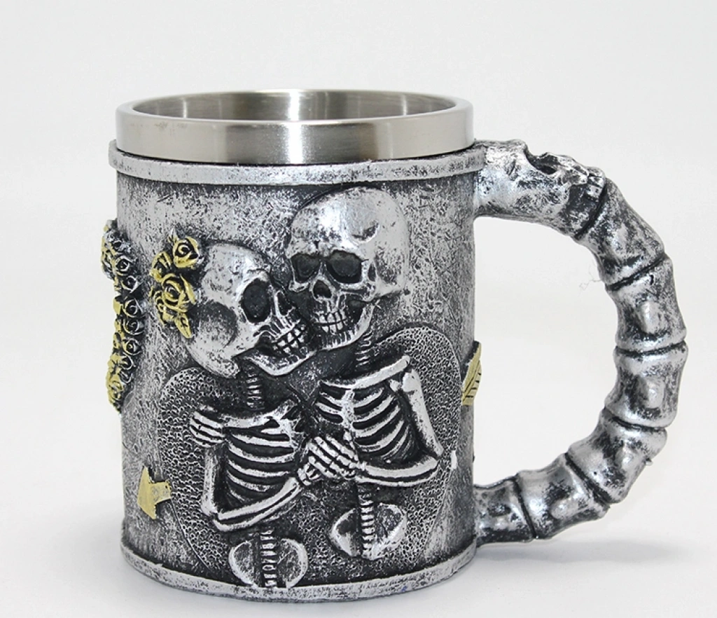 Nevamel® Sonsuz Aşk İskelet Tasarımlı 3D Kabartmalı Çelik Kupa Bardak