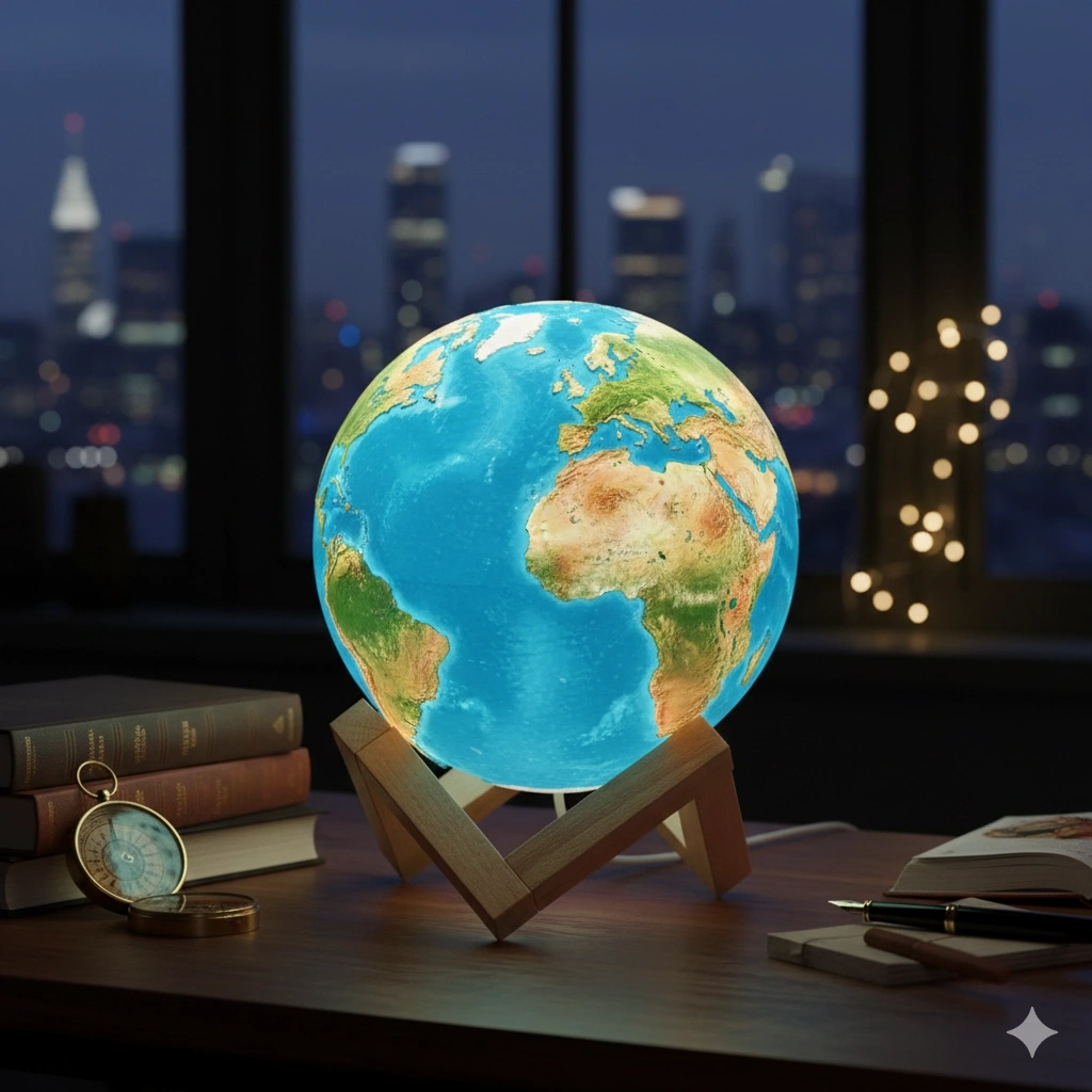 STANDLI IŞIKLI DÜNYA KÜREÜrün ÖzellikleriStandlı Işıklı Dünya Küre, şık ve modern tasarımıyla hem dekoratif hem de işlevsel bir masaüstü aksesuarıdır. Aydınlatma özelliği, kürenin detaylarını net bir şekilde görmenizi sağlarken, aynı zamanda ortamınıza zarif bir ışık kaynağı sunar. Standı sayesinde stabil ve güvenli bir kullanım imkanı sunan bu dünya küresi, hem ev hem de ofis ortamları için mükemmel bir seçimdir. Hem coğrafi bilgilerinizi gözden geçirmenize yardımcı olur, hem de yaşam alanınıza estetik bir dokunuş katar.Paket İçeriği1 adet Standlı Işıklı Dünya Küre
