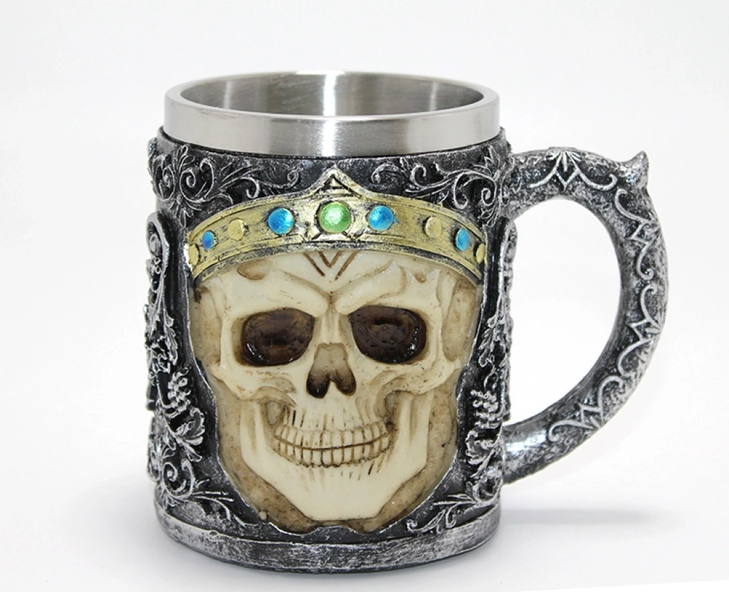 Nevamel® Taçlı Kurukafa Kralı 3D Kabartmalı Çelik Kupa Bardak
