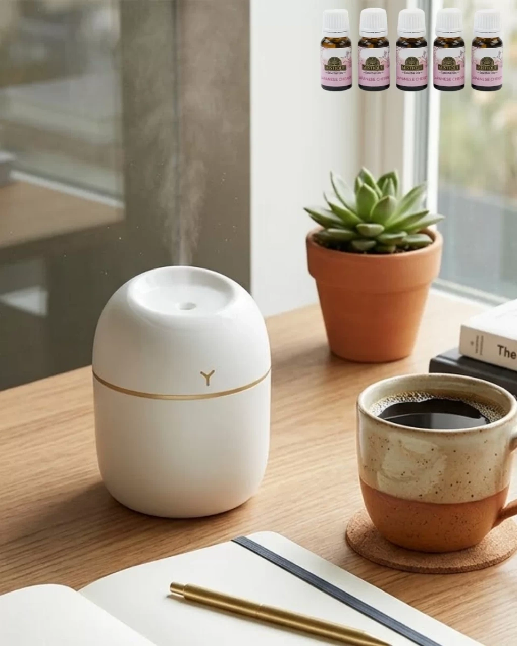 Kapalı ortamlarda uzun süre vakit geçirmek, hava kalitesinin düşmesine neden olabilir. Bu mini hava nemlendirici, bulunduğunuz ortamın nem seviyesini dengeler ve daha sağlıklı bir yaşam alanı oluşturur. Kompakt yapısı sayesinde masa üstünde, yatak odasında veya araç içinde rahatlıkla kullanılabilir.Ürün ile birlikte gelen 5 esans hediyesi, kullanım deneyimini daha keyifli hale getirir. Aromaterapi özelliği sayesinde stresinizi azaltabilir, zihinsel olarak rahatlayabilir ve bulunduğunuz ortamı daha huzurlu bir hale getirebilirsiniz.LED ışık özelliği sayesinde ortamda hoş bir ambiyans oluşturur. Özellikle gece saatlerinde sakinleştirici bir etki sunar. Modern tasarımı ile dekoratif bir ürün olarak da öne çıkar.Yaklaşık 4 saat boyunca kesintisiz çalışabilir. Bu sayede sürekli su ekleme ihtiyacı duymazsınız. Otomatik kapanma özelliği sayesinde su seviyesi düştüğünde cihaz kendini kapatarak güvenli kullanım sağlar.Sessiz çalışması sayesinde hem uyku sırasında hem de çalışma ortamında rahatlıkla kullanılabilir. Günlük yaşamda konforu artıran pratik ve etkili bir üründür.