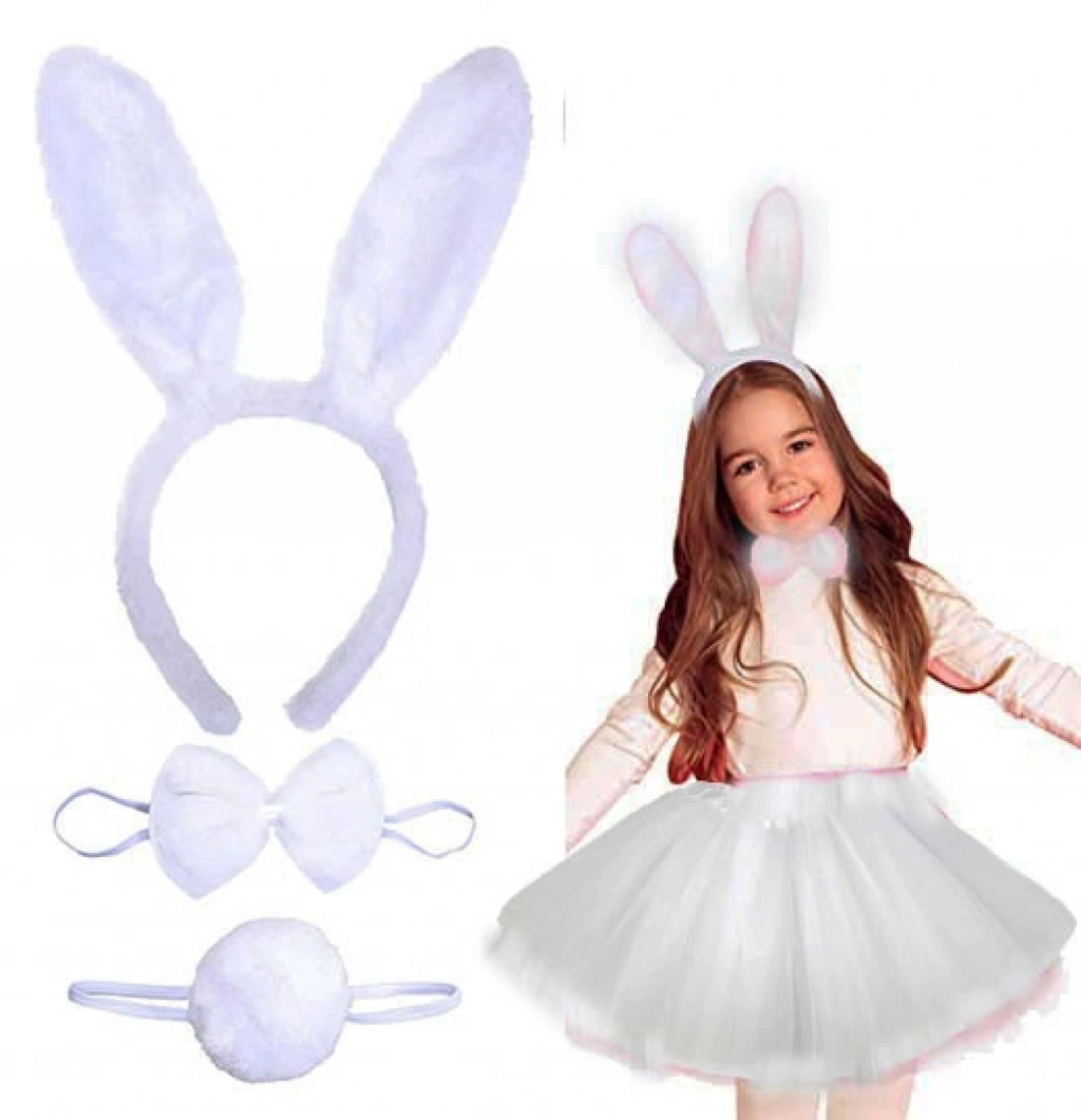 TAVŞAN KOSTÜM SETİ - BEYAZ RENK, ÇOCUK BOYÜrün ÖzellikleriBu beyaz tavşan kostüm seti, çocuklar için tasarlanmış eğlenceli ve şirin bir kostüm seçeneğidir. Set, tavşan kulaklı taç, tütü etek, papyon ve kuyruktan oluşur. Yumuşak malzemeden üretilmiş olan bu set, rahatça giyilebilir ve çocukların hareket özgürlüğünü kısıtlamaz. Doğum günü partileri, kostüm etkinlikleri, okul gösterileri ve özel günlerde çocuklara sevimli bir tavşan görünümü kazandırır.Kullanım AlanlarıDoğum günü partileriKostüm partileriOkul gösterileriÖzel gün etkinlikleriPaket İçeriği1 adet Tavşan Kulaklı Taç1 adet Tütü Etek1 adet Papyon1 adet Kuyruk