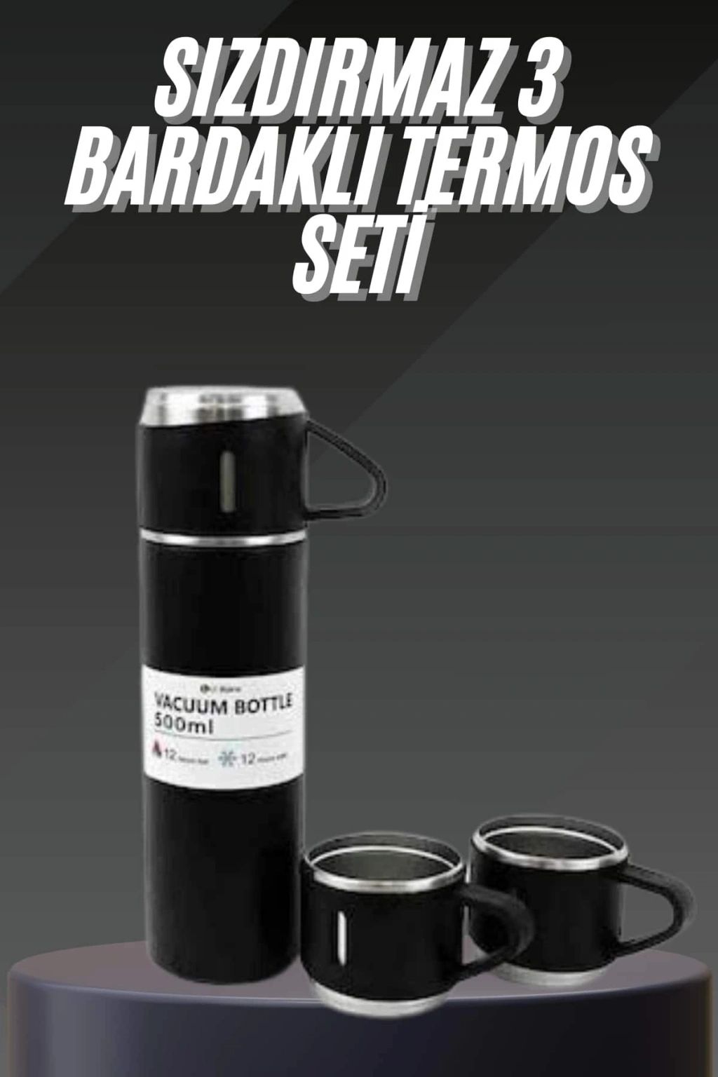 Nevamel Termos Seti Paslanmaz Çelik 3 Bardaklı Vakumlu Termos Set 500 Ml 12 Saate Kadar Isı Koruma
