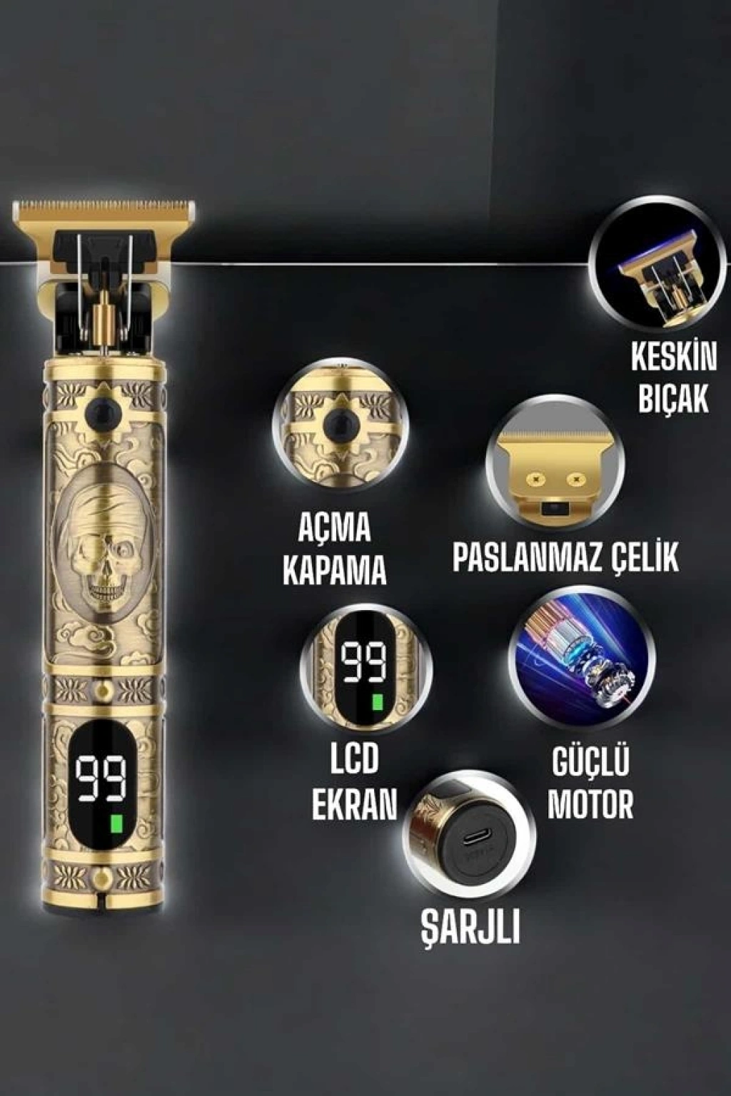 Nevamel Tıraş Makinesi Çizik Tıraş Paslanmaz Çelik Uzun Ömürlü Şarjlı
