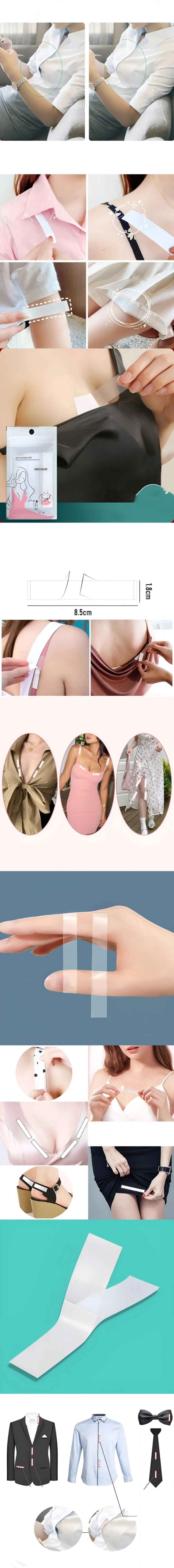 Kumaş dostu-kıyafetlerinizi ve kumaşlarınızı Metal pimler deliklerle mahvetmeyi bırakın! Pimlerden farklı olarak, çift taraflı bandımız herkes için görünmezdir. Yapıştırıcımız, çıkarıldıktan sonra kumaşınızda kalıntı bırakmayacak şekilde tasarlanmıştır.