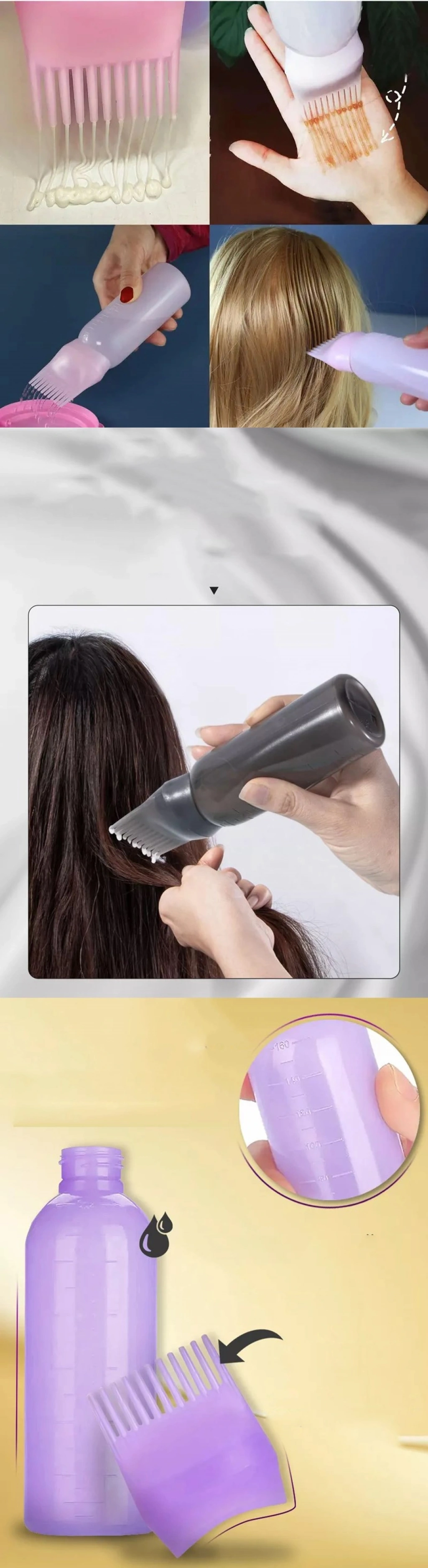 * Doldurulabilir Şişe: 160 ml kapasiteli şişeler, saç boyası, maske veya bakım yağları için uygundur; tekrar tekrar kullanılabilir.