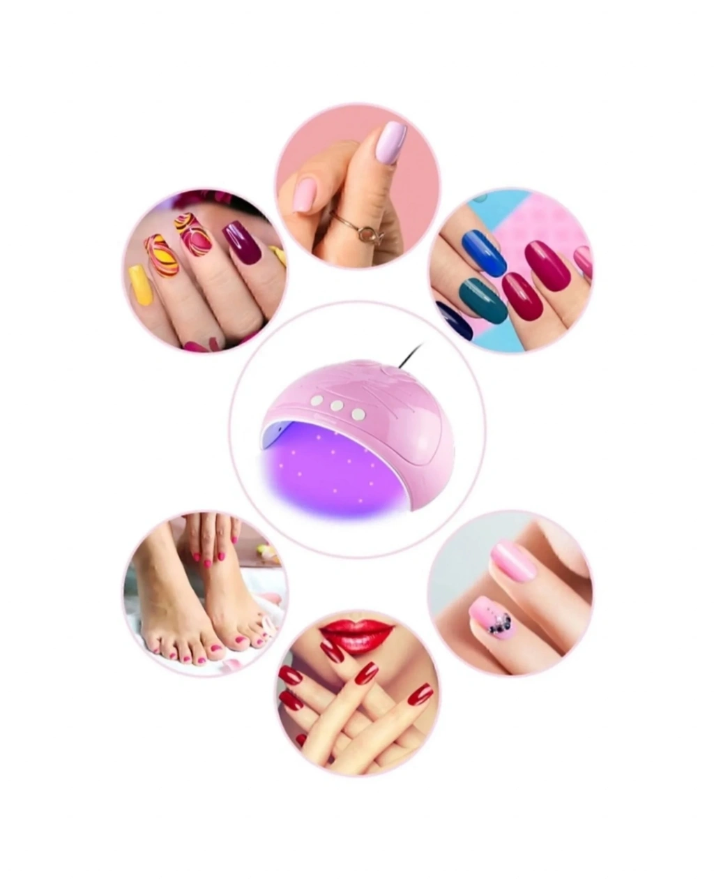 Ultraviyole LED teknolojisi ile donatılmış bu oje kurutucu cihaz, evde profesyonel manikür uygulamaları yapmak isteyen kullanıcılar için geliştirilmiştir. 15 LED ışık kaynağı ve 45W güç kapasitesi, ojelerin hızlı ve eşit şekilde kurumasına yardımcı olur. Özellikle jel bazlı ojelerde etkili sonuçlar elde edilmesine katkı sağlar.Cihazın sunduğu zaman ayarlama seçenekleri, kullanıcıya esnek bir kullanım deneyimi sunar. 60, 90 ve 120 saniyelik seçenekler, farklı oje türleri için uygun kurutma süresi belirlenmesine imkân tanır. Elinizi cihazın içerisine yerleştirmeniz yeterlidir. Otomatik algılama özelliği sayesinde elinizi çektiğinizde ışık kapanır ve güvenli kullanım sağlanır.Ultraviyole ışık, gözle görülebilen dalga boyunda çalışır ve güvenlik ön planda tutularak tasarlanmıştır. USB kablo ile çalışması, cihazın farklı ortamlarda rahatça kullanılmasını sağlar. USB kablo ürün içeriğinde mevcuttur ve bilgisayar, adaptör veya powerbank ile uyumludur.Kompakt ve hafif yapısı sayesinde cihaz taşınabilir özelliktedir. Evde, ofiste veya seyahat sırasında rahatlıkla kullanılabilir. Düzenli kullanımda ojelerin daha uzun süre dayanmasına, daha pürüzsüz ve estetik görünmesine yardımcı olur. Günlük bakım rutininde pratik bir çözüm sunar.