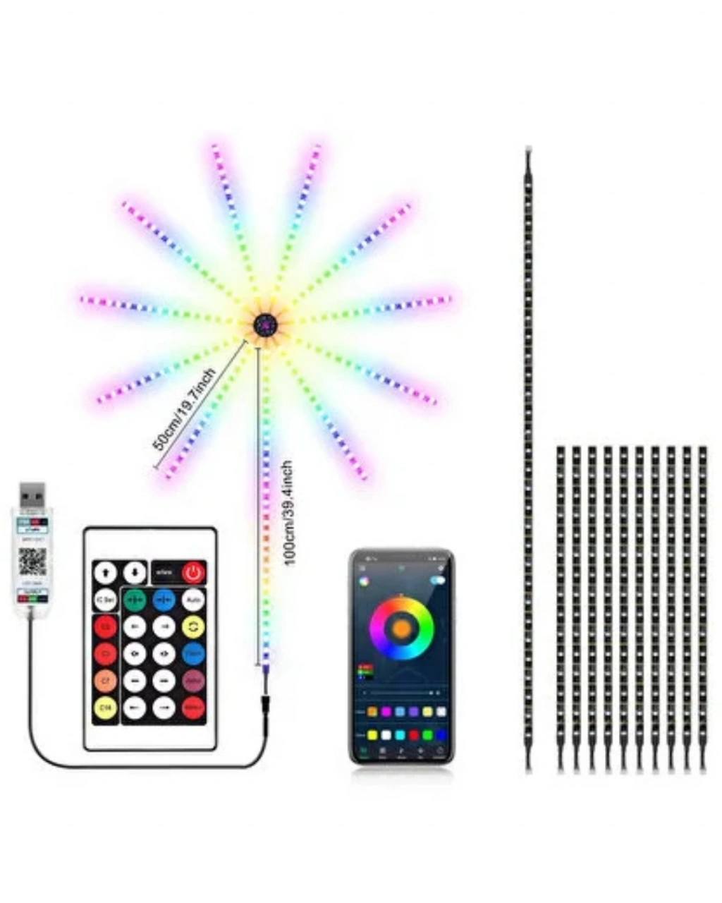 Uygulama Destekli RGB LED Havai Fişek Duvar Aydınlatması, modern ev dekorasyonunda teknolojiyi estetikle birleştiren özel bir üründür. Duvara monte edilen havai fişek tasarımı, ışığın merkezden dışa doğru yayılmasıyla güçlü bir görsel etki oluşturur. Özellikle akşam saatlerinde ve düşük ışıklı ortamlarda bulunduğu alanın havasını tamamen değiştirir.Ürün, çok parçalı ve modüler LED kollardan oluşur. Bu yapı, kurulum sırasında esneklik sağlar ve kullanıcıya özgün tasarımlar oluşturma imkânı tanır. LED kollar istenilen açı ve düzende yerleştirilebilir. Sökülebilir yapısı sayesinde ihtiyaç halinde kolayca demonte edilebilir ve farklı bir alanda yeniden kurulabilir.RGB LED sistemi, geniş renk skalası ve çeşitli ışık efektleri sunar. Tek renkli aydınlatmalar, yumuşak geçişler, hızlı renk değişimleri ve dinamik animasyonlar sayesinde her ortam için uygun bir atmosfer yaratılabilir. Uzaktan kumanda ile pratik kontrol sağlanırken, mobil uygulama üzerinden daha detaylı ayarlamalar yapılabilir.Uygulama desteği, ürünü klasik LED aydınlatmalardan ayıran en önemli özelliklerden biridir. Renk çarkı üzerinden istenilen ton seçilebilir, parlaklık seviyesi ayarlanabilir ve efekt geçiş hızları kontrol edilebilir. Müzik senkronizasyon özelliği sayesinde ışıklar sesle uyumlu şekilde hareket eder ve ortamda eğlenceli bir atmosfer oluşturur.USB bağlantı ile çalışan ürün, enerji verimliliği açısından avantaj sağlar. Powerbank veya adaptör ile çalışabilmesi sayesinde kullanım alanı oldukça geniştir. Uzun süreli kullanımda düşük enerji tüketimi sayesinde ekonomik bir çözümdür.Uygulama Destekli RGB LED Havai Fişek Duvar Aydınlatması, hem dekoratif hem de fonksiyonel yapısıyla yaşam alanlarına modern bir dokunuş katmak isteyenler için güçlü bir tercihtir.