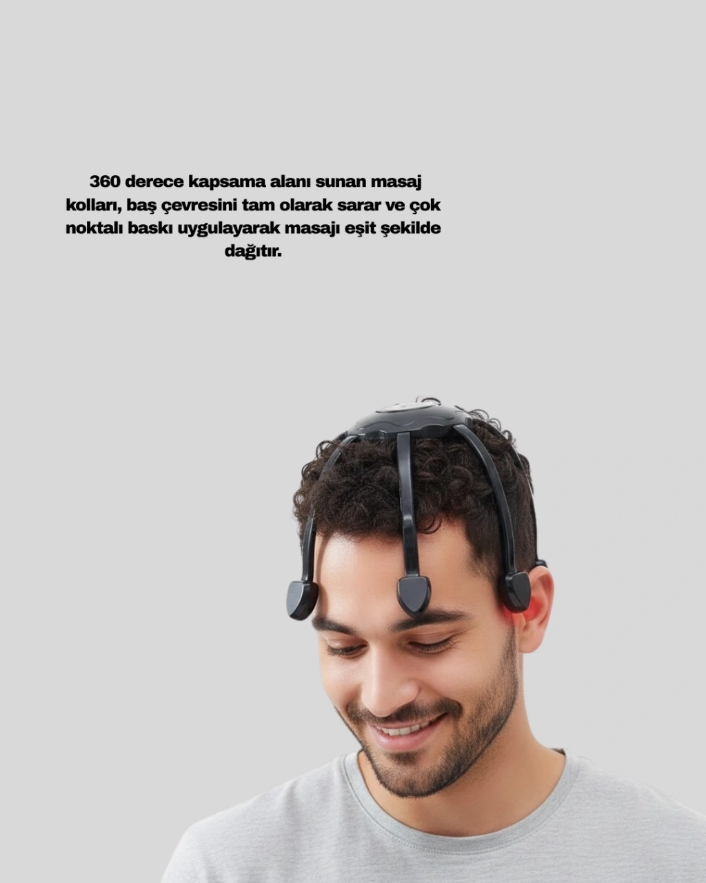 Elektrikli saç derisi masaj aleti, gün içinde biriken zihinsel ve fiziksel yorgunluğu azaltmaya yardımcı olmak amacıyla geliştirilmiş pratik bir rahatlama ürünüdür. Çok noktalı 8 kollu masaj sistemi, saç derisinin tamamına eşit temas ederek konforlu ve dengeli bir masaj hissi sunar. Esnek masaj kolları baş yapısına uyum sağlayarak her kullanımda homojen bir deneyim oluşturur.Cihazın titreşimli yapısı, saç derisinde ferahlık hissi yaratırken rahatlamayı destekler. Üç farklı masaj modu sayesinde kullanıcılar ihtiyacına göre masaj yoğunluğunu kolayca ayarlayabilir. Hafif mod, sakinleşme ve gevşeme odaklı bir kullanım sunar. Orta mod, gün boyunca oluşan gerginliğin azalmasına yardımcı olur. Yoğun mod ise daha belirgin titreşimlerle güçlü bir masaj hissi sağlar.USB şarjlı tasarımı sayesinde her ortamda kolay kullanım imkânı sunar. Bilgisayar, powerbank veya adaptör ile şarj edilebilir olması, ürünü günlük yaşamda son derece pratik hale getirir. Sessiz motor teknolojisi, gece saatlerinde dahi rahatsızlık vermeden kullanılmasını mümkün kılar.Hafif ve kompakt yapısı sayesinde evde, ofiste veya seyahatlerde rahatlıkla taşınabilir. Düzenli kullanımda saç derisinde rahatlama hissini artırarak günlük bakım rutinine konforlu bir katkı sağlar. Elektrikli saç derisi masaj aleti, kendine zaman ayırmak isteyen kullanıcılar için etkili ve pratik bir yardımcıdır.