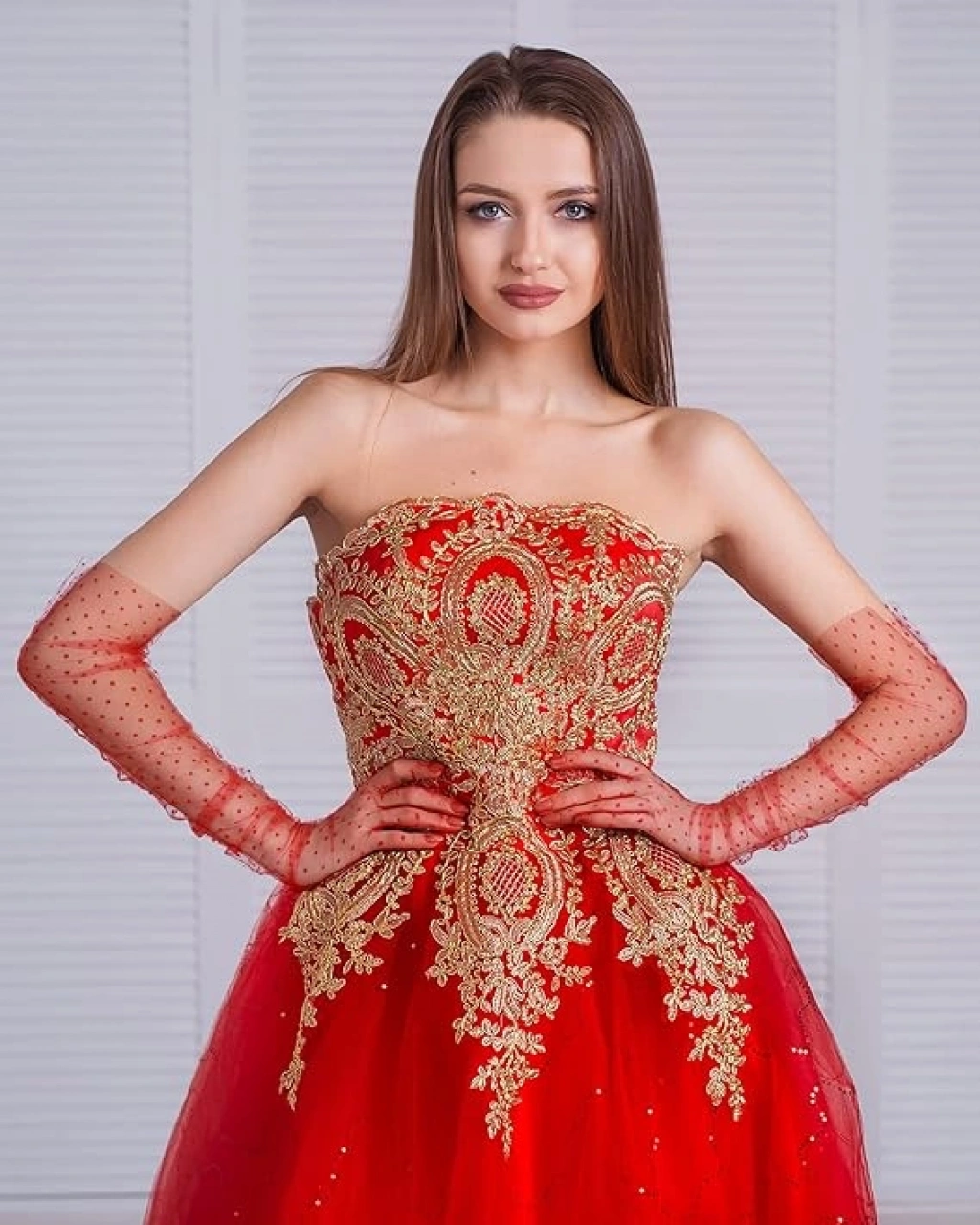 Nevamel Uzun Boy Kırmızı Puantiyeli Kırmızı Renk Yetişkin Tül Eldiven