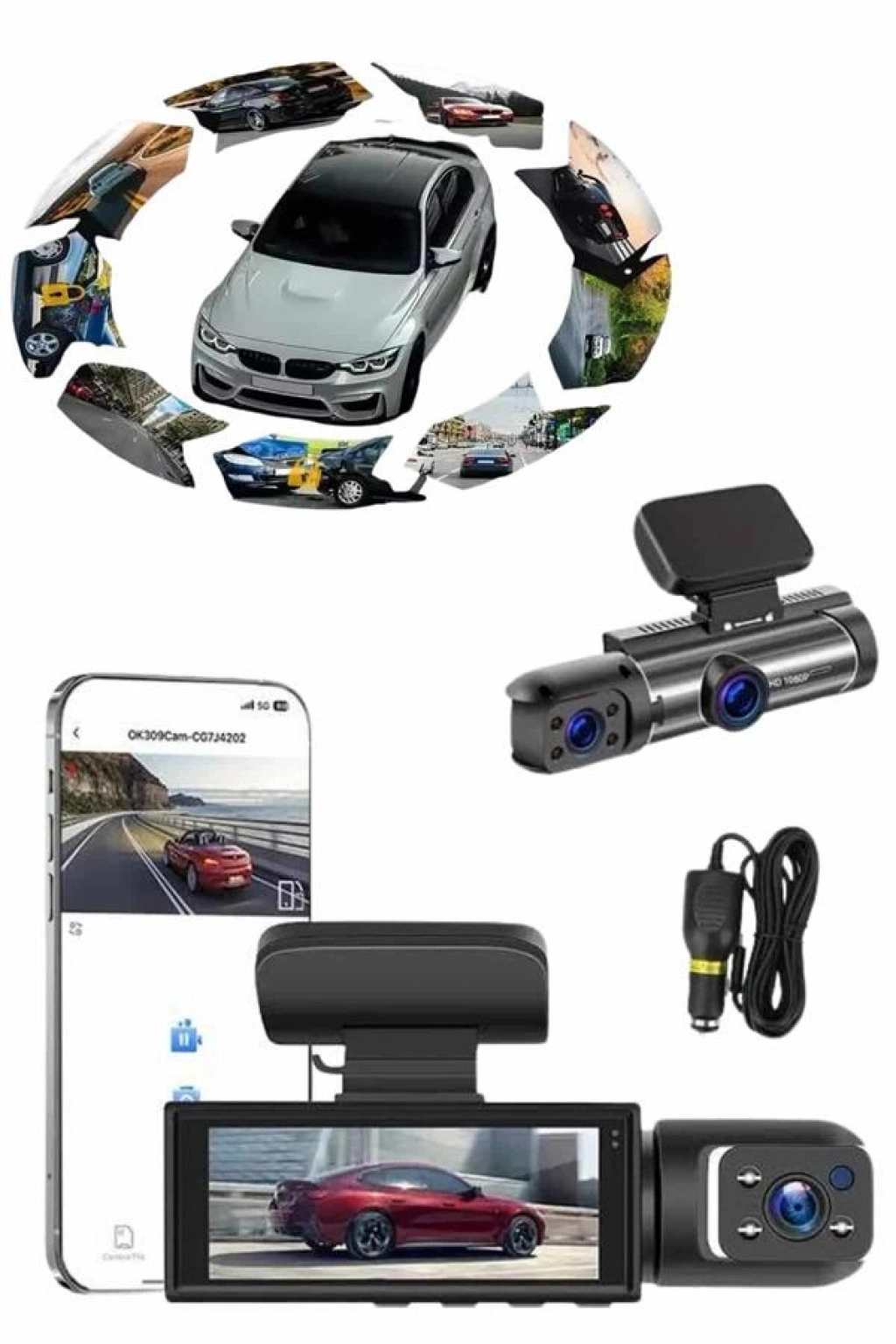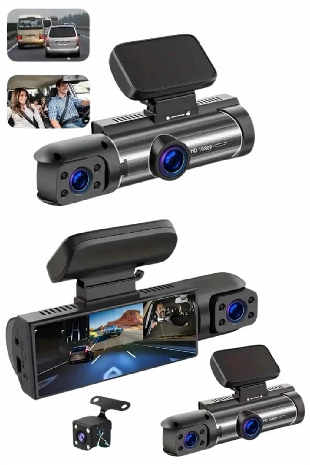 Bu gelişmiş araç içi kamera sistemi, sürüş güvenliğini ve kayıt ihtiyaçlarını en üst düzeye taşımak için tasarlanmıştır. Sistemde yer alan ön, iç ve arka olmak üzere üç kamera aynı anda kayıt alabilir, böylece hem yol hem yolcu hem de araç arkası her an izlenebilir durumda olur. 1080P Full HD çözünürlüğe sahip ön kamera, net ve keskin görüntüler sunarken; 720P çözünürlüğündeki iç ve arka kameralar, ek güvenlik sağlar. Geniş 170 derece görüş açısı, tüm şeritleri kapsamaya yardımcı olur ve kör nokta riskini minimize eder.2 inç IPS ekranı ile kayıtlar anında izlenebilir. Geri vitese geçildiğinde, park çizgileri otomatik olarak ekrana yansır ve arka kamera devreye girer, bu da park manevralarını büyük ölçüde kolaylaştırır. Dahili G sensörü sayesinde araç sarsıldığında, çarpışmalarda veya darbe anında sistem otomatik olarak kritik görüntüleri korumaya alır. Hareket algılama fonksiyonu ise araç park halindeyken dahi çevresel aktiviteleri algılayarak kayıt yapar.Cihaz, 64 GB’a kadar hafıza kartı desteği sunar ve döngüsel kayıt özelliği sayesinde bellek dolduğunda eski verilerin üzerine yeni kayıtlar otomatik olarak yazılır. Ergonomik ve kompakt tasarımı sayesinde görüş alanını engellemeden kolayca monte edilebilir. Kutu içeriğinde kamera, sabitleyici yapışkan aparat, araç çakmaklık şarj cihazı ve kullanım kılavuzu yer alır. Güvenlik, kayıt ve sürüş konforunu bir arada arayan kullanıcılar için ideal bir teknolojik çözümdür.