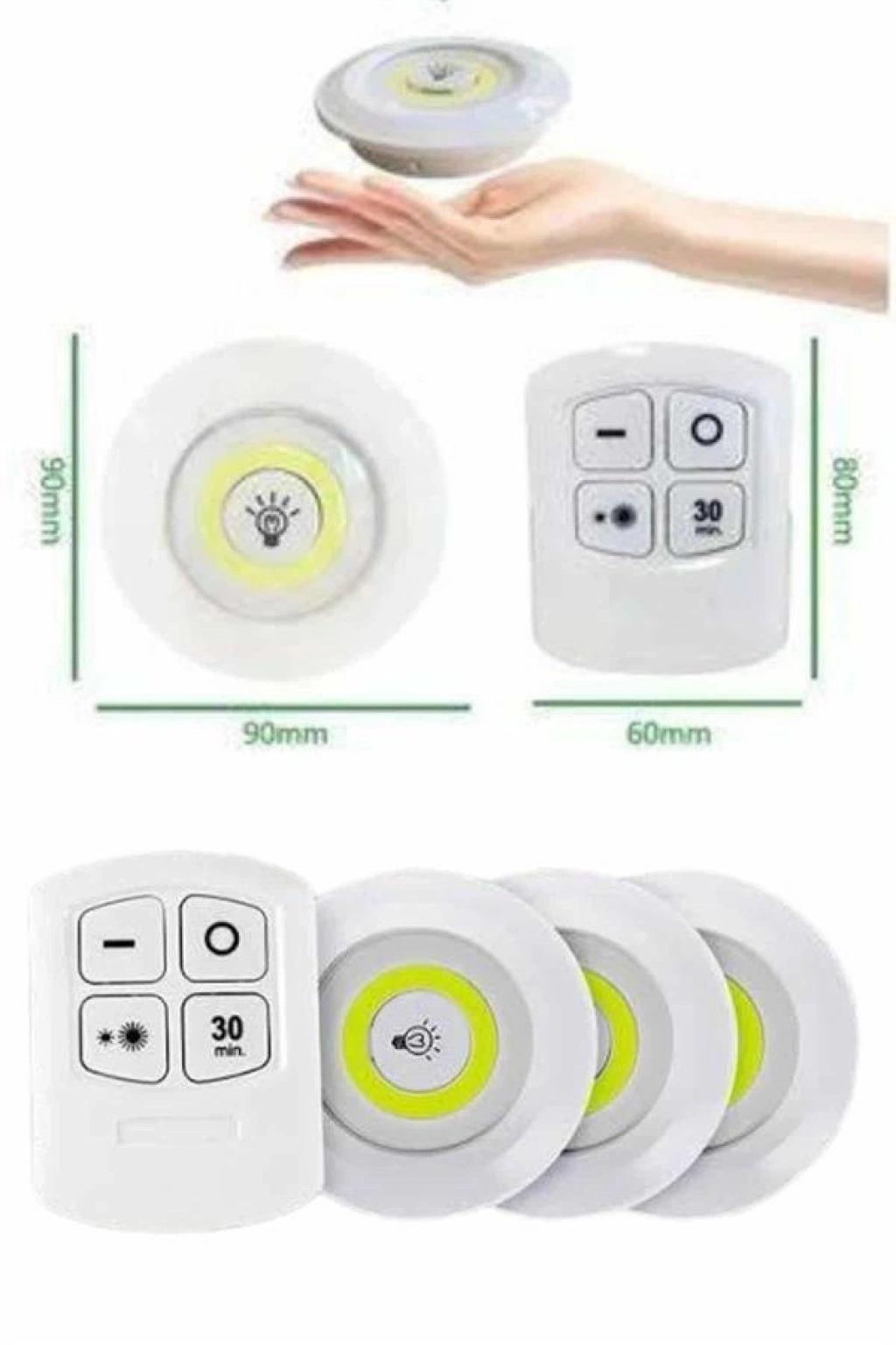 Nevamel Yapışkanlı 3'lü Spot Led Işık Lamba Montajsız Pilli Uzaktan Kumandalı