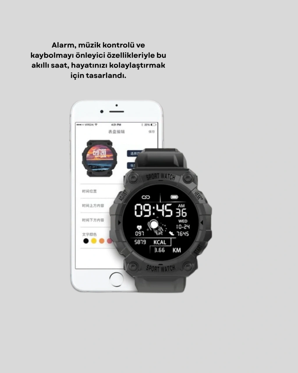 Hem stil sahibi olun hem sağlığınızı takip edin!Bu Bluetooth akıllı saat, günlük hayatınızı kolaylaştırmak için tasarlanmış modern bir teknolojik aksesuardır.Metal çerçevesi ve rahat silikon kordonu, zarif ve dayanıklı bir görünüm sunar.Hem spor hem klasik kıyafetlerle mükemmel uyum sağlar.Bluetooth 5.0 bağlantısı ile Android ve iOS cihazlara anında bağlanır.Gelen çağrılar, mesajlar ve bildirimler doğrudan bileğinizde görüntülenir.Sağlık sensörleri, kalp atış hızınızı, kan basıncınızı ve oksijen seviyenizi anlık olarak ölçer.Böylece gün boyu vücudunuzu kontrol altında tutabilirsiniz.Ayrıca uyku takibi, adım sayar, kalori ölçer ve mesafe hesaplayıcı özellikleriyle aktif yaşam tarzınızı destekler.Hava durumu, müzik kontrolü, alarm ve telefon bulma işlevleriyle hayatınızı kolaylaştırır.1-2 gün pil ömrü, yoğun kullanımlarda bile uzun süre dayanıklılık sağlar.Manyetik şarj özelliği sayesinde şarj işlemi hızlı ve pratiktir.Şık görünümü, akıllı teknolojisi ve ergonomik tasarımıyla bu saat, günlük yaşamınızın her alanında size eşlik eder.Spor yaparken, çalışırken veya seyahat ederken — tek bir dokunuşla tüm kontrol elinizde!