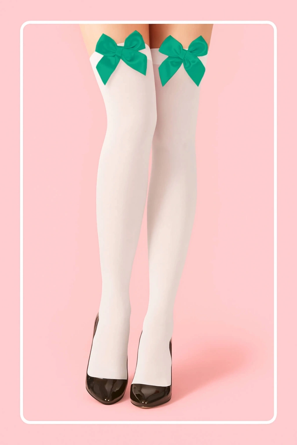 Nevamel® Yeşil Fiyonklu Beyaz Jartiyer Çorabı TM1380