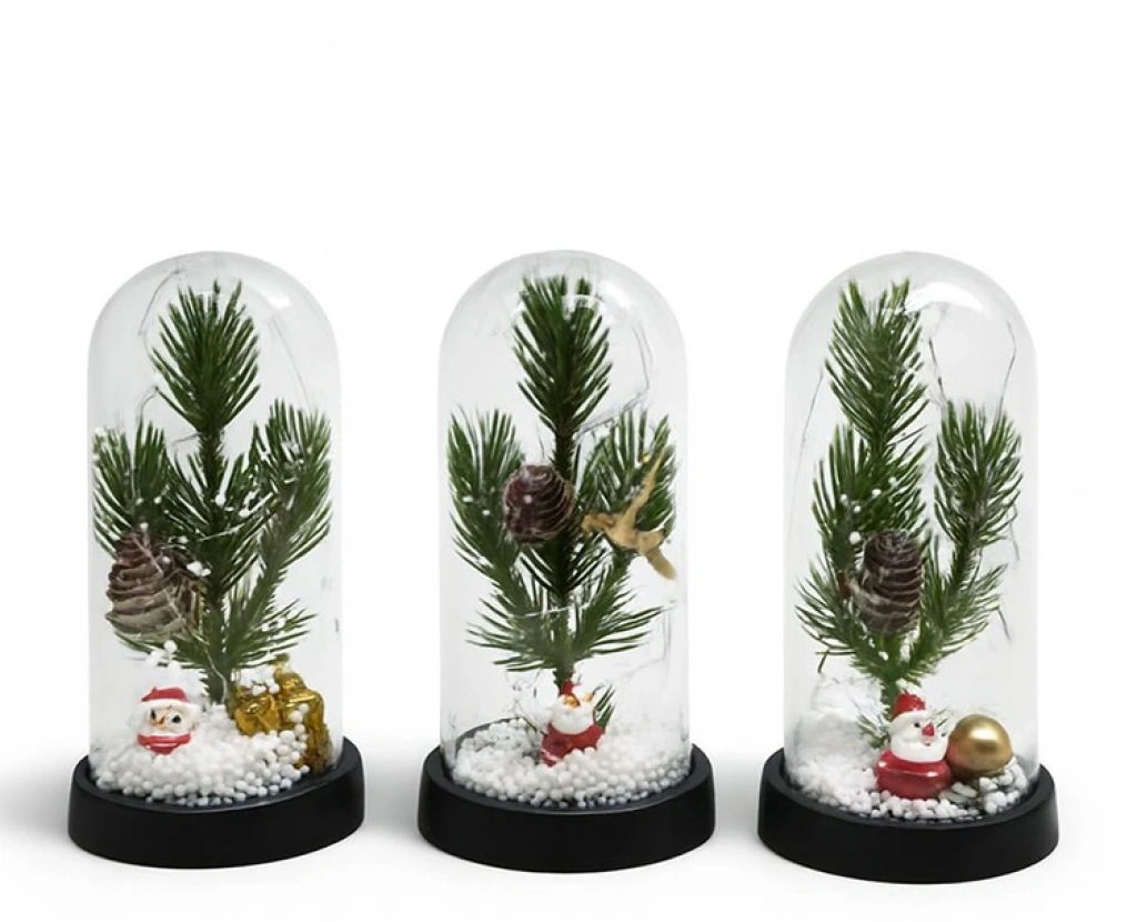 YILBAŞI TEMALI IŞIKLI DEKORATİF CAM FANUS - MODEL 9Ürün ÖzellikleriYılbaşı Temalı Işıklı Dekoratif Cam Fanus - Model 9, yeni yıl konseptli dekorasyonlarda sıcak ve dikkat çekici bir atmosfer oluşturmak için tasarlanmıştır. 19x9 cm ölçüsündeki kompakt yapısı sayesinde masa üstü, sehpa, konsol ve vitrin dekorasyonlarında rahatlıkla kullanılabilen ışıklı cam fanus, cam kubbe formu ile estetik bir görünüm sunar. İç kısmında yer alan yılbaşı temalı figür ve ağaç detayları ile öne çıkan yılbaşı dekoratif fanus, çok renkli ışık efektleri sayesinde loş ortamlarda hoş bir ambiyans oluşturur. Siyah tabanlı tasarımı sayesinde dengeli ve sabit bir duruş sergileyen dekoratif yılbaşı süsü, hem ev hem de ofis ortamlarında yeni yıl dekorasyonunu tamamlayan şık bir aksesuardır. Küçük boyutuna rağmen dekoratif etkisi yüksek olan tasarımı ile farklı alanlarda pratik kullanım sağlar.Ürün Teknik Özellikleri Özellik Açıklama Ürün Adı Yılbaşı Temalı Işıklı Dekoratif Cam Fanus - Model 9 Model Model 9 Ölçü 19 x 9 cm Tema Yılbaşı Özellik Işıklı Paket İçeriği1 Adet Yılbaşı Temalı Işıklı Dekoratif Cam Fanus - Model 9